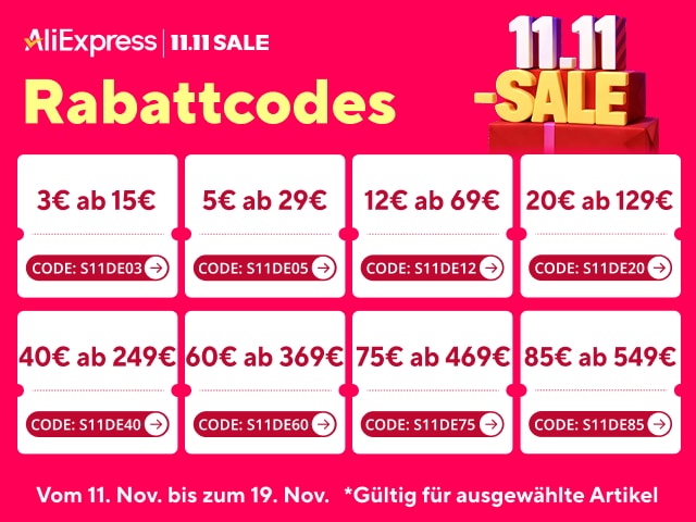 Der offizielle Sale läuft vom 11. bis 19. November, aber schon vorher lassen sich viele Schnäppchen entdecken, zum Beispiel bei Handys, Smartwatches oder Haushalts-Gadgets. Und das Beste, die Gutscheine sind so gestaltet, dass du bereits bei kleinen Bestellwerten sparen kannst. Perfekt für Mini-Gadgets, Ersatzteile oder einfach den spontanen Technik-Kauf.