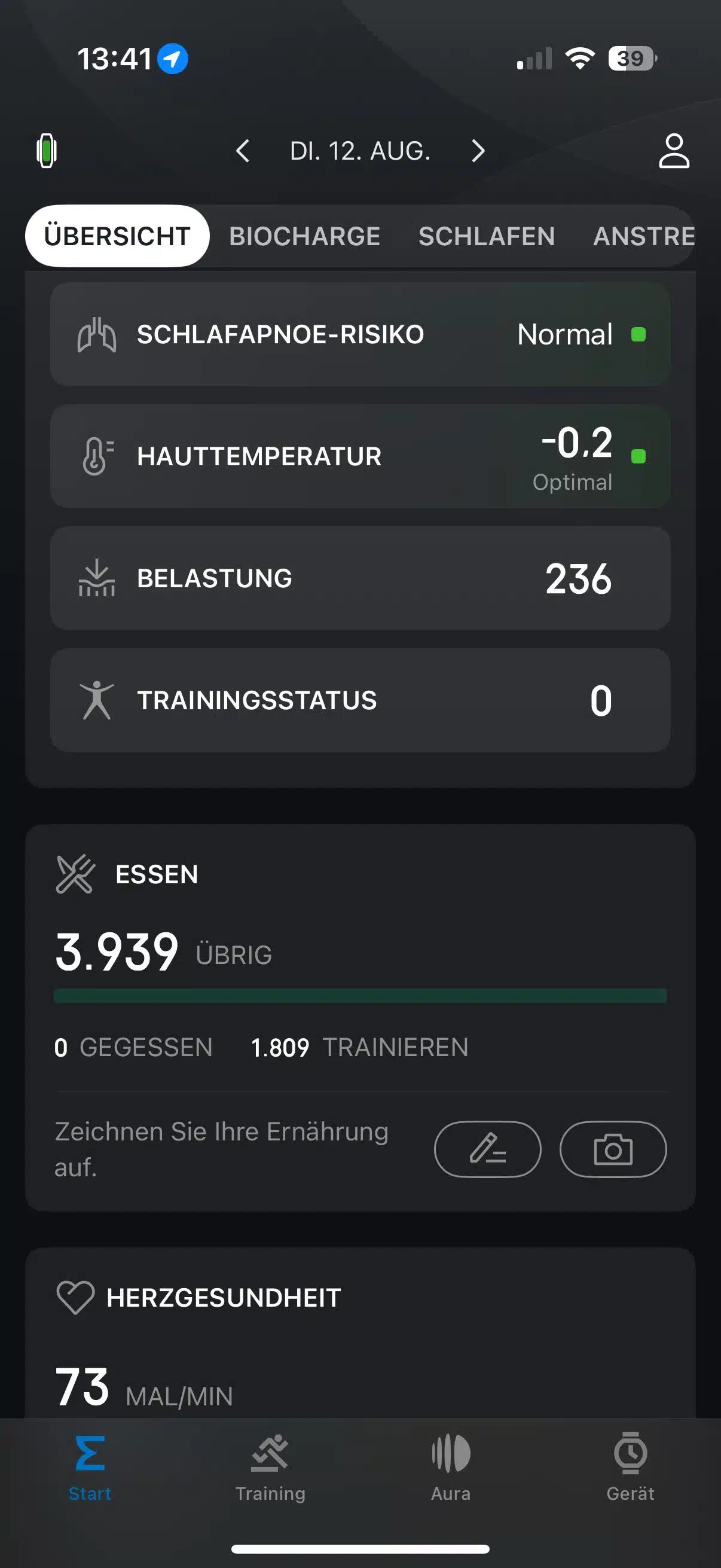 Sensoren | Herzfrequenz, SpO2, Stress, Schlaf, Temperatur |