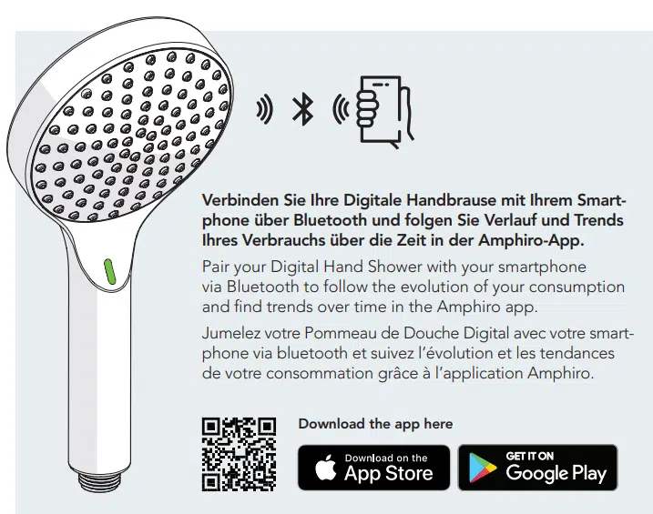 Amphiro Digitale Handbrause – smarte Duschbrause um Wasser und Energie zu sparen App, LC-Display, Bluetooth