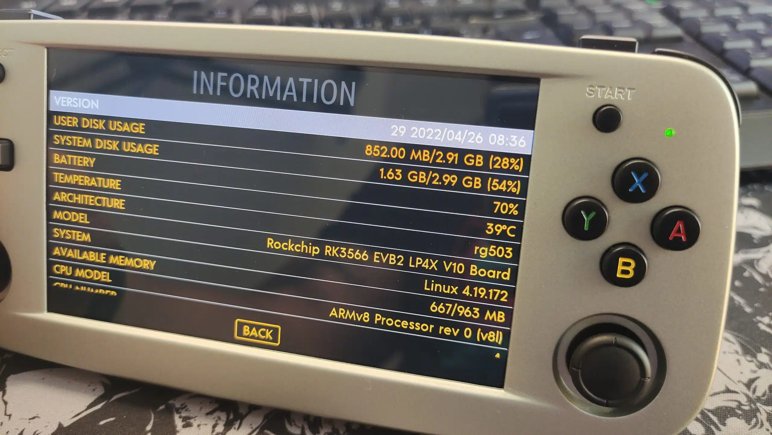 Für die Emulation und der damit sämtlichen, verbundenen Rechenaufgaben, ist ein RK3566 Quad-Core 64 Bit Prozessor mit einem Takt von 1.8GHz und 1 GB LPDDR4 RAM verantwortlich. Somit steht nur minimal mehr Rechenleistung als in den beiden Vorgängermodellen zur Verfügung. Für den deutlich angehobenen Preis fällt der Sprung in der Leistung aber zu gering aus.