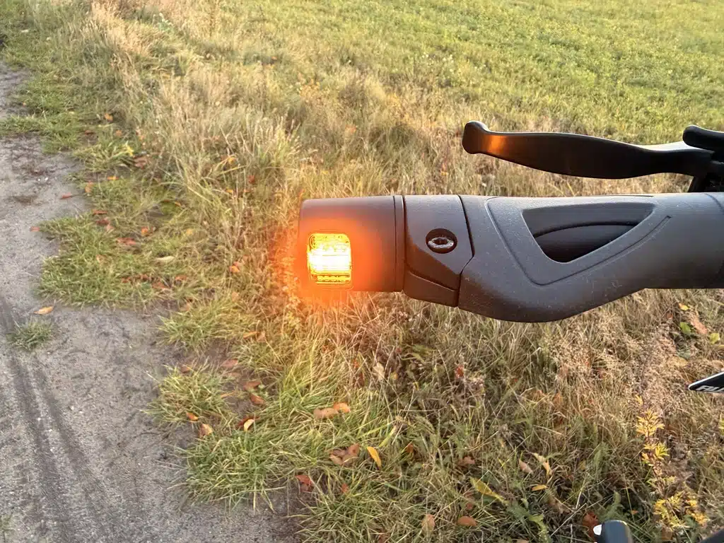 Beleuchtung? Komplett: Frontscheinwerfer, Rücklicht, Bremslicht und Blinker sind integriert – Letztere sind besonders praktisch, wenn die Blinkpflicht für E-Scooter künftig gesetzlich wird. Das Ganze ist nach IP54 gegen Spritzwasser geschützt, was kurze Regenschauer übersteht, aber keine Dauerregen-Touren.