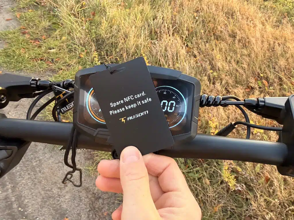 Während viele Hersteller auf App-Anbindung und Cloud-Spielereien setzen, bleibt der L1 angenehm analog. Eine NFC-Entsperrung ersetzt das Smartphone, drei Karten liegen bei. Alternativ lässt sich der Scooter per Code aktivieren.
