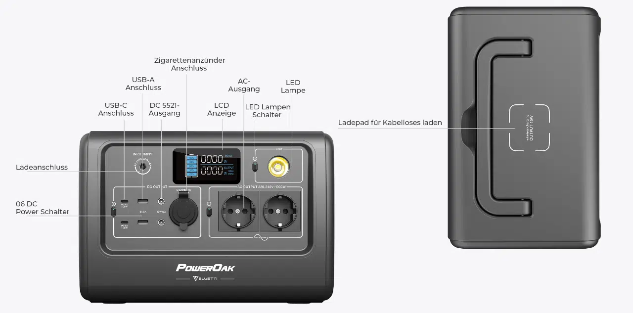BLUETTI EB70 – viel Leistung im kleinen Maß? 716 Wh, 1000 Watt Leistung, Qi-Ladefläche, USB-C, Schuko