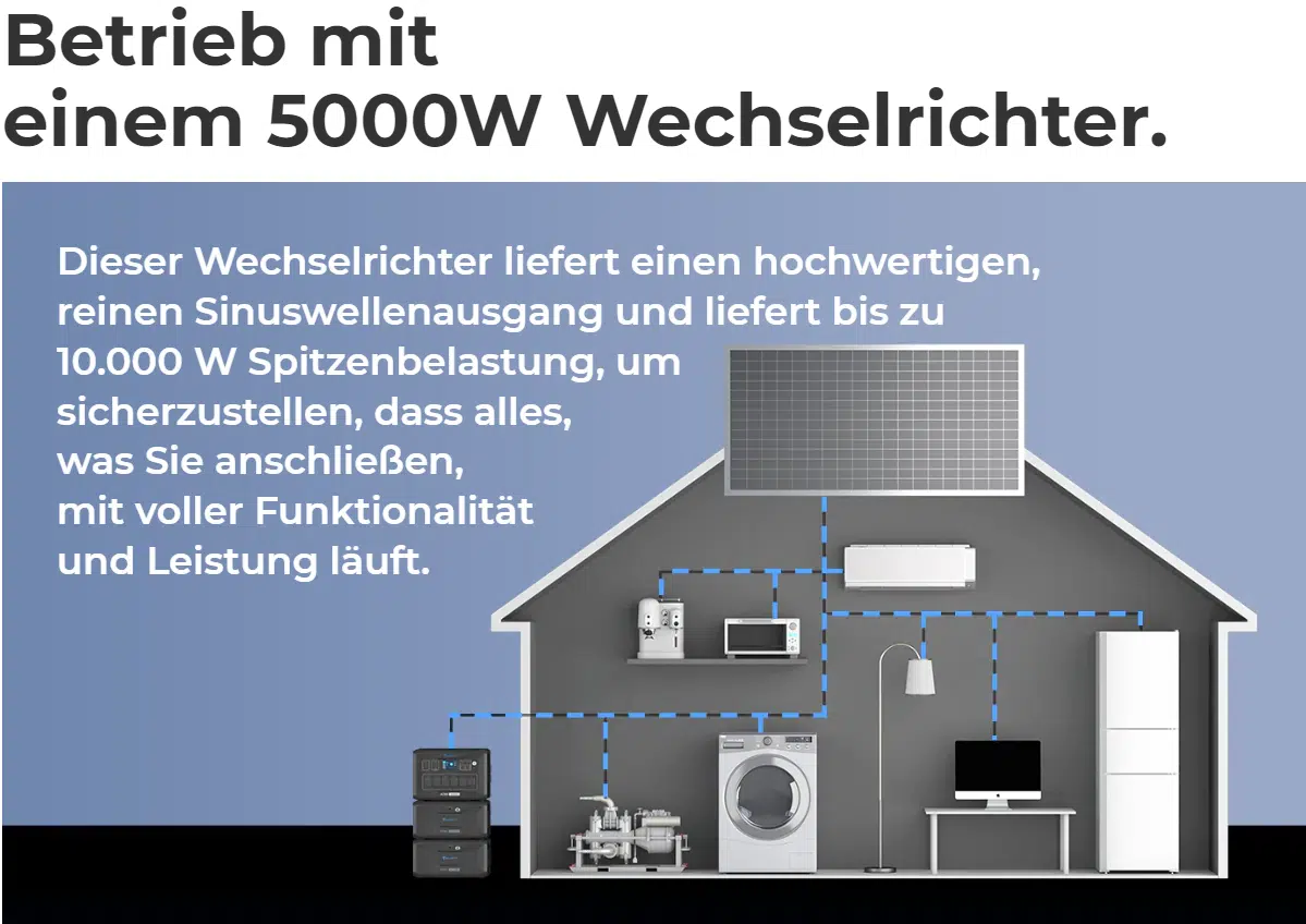 Bluetti hat eine modulare Kombination entworfen, die sich an das Heimnetz anschließen lässt. Dafür muss allerdings der Haushaltsstrom vom externen Netz getrennt werden. Ein sogenanntes Home Backup, um auf Stromausfälle besser vorbeireitet oder das eigene Zuhause netzunabhängig unterstützen zu können. So spart man definitiv bei der Stromrechnung.
