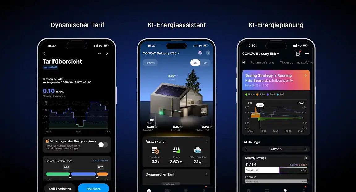 Das System ist Teil von Conows AI HEMS (Home Energy Management System), das laut dem Hersteller über ein lernendes Energiemanagement verfügt. Es analysiert Verbrauchsdaten, aktuelle Strompreise und Wetterprognosen, um den Energiefluss zwischen Photovoltaik, Batterie und Netz zu optimieren.