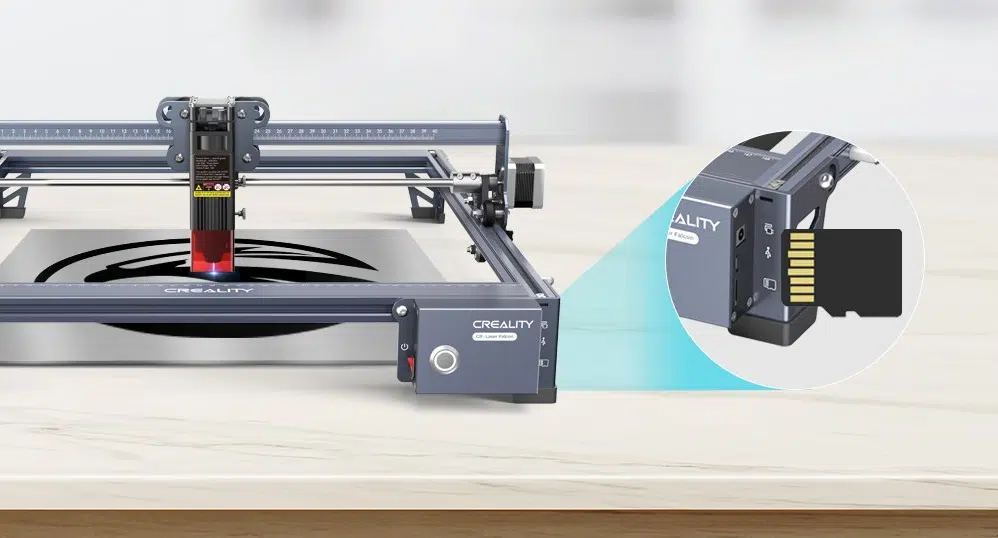 Auf ein Display verzichtet der Hersteller hier und auch bei den Bedienelementen ist man sparsam und der ganze Engraver wird mit nur einer Taste und einem SD-Karten-Slot bedient.