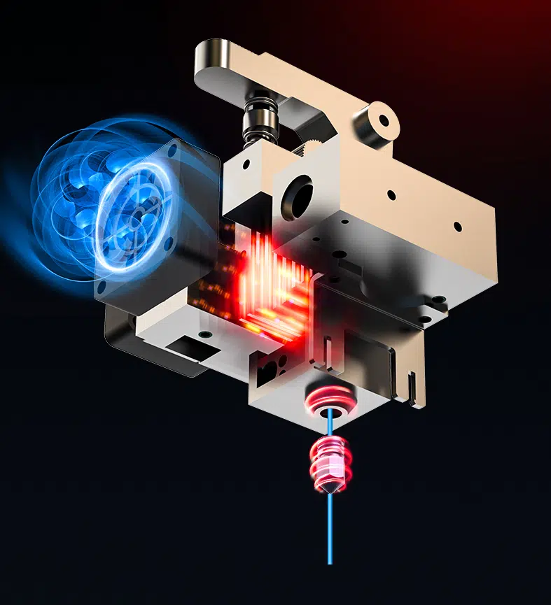 Das sorgt dafür, dass das Filament jeglicher Art besser in den Druckkopf zum aufheizen gelangt. Gerade bei flexiblen Filament ein Vorteil. Wobei das auch mit herkömmlichen Zuführen gut funktionieren kann, je nach Drucker natürlich. Die maximale Drucktemperatur der Düse liegt bei 250°C das ebenso für ABS tauglich ist.