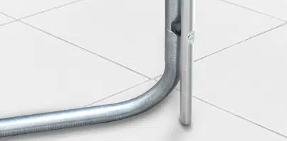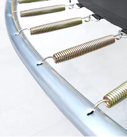 Generell sind die meisten Trampoline mit großen, U-förmigen Beinen ausgestattet. Hier wurden zusätzlich zu den Beinen verlängerte Netzstangen, die bis zum Boden reichen, mit eingefügt. Somit erhöht sich damit die Stabilität.