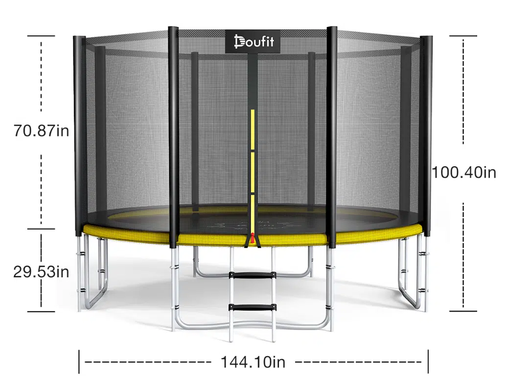 Doufit TR-07 – Trampolin mit bis zu 200kg Belastung Ø366 cm, robust, Montagevideo