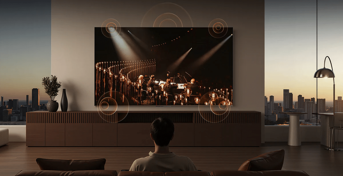 Der auffälligste Unterschied ist der Ton: Die S100 integrieren eine Soundbar, die als 4.1.2-System mit 11 Treibern und 70 Watt beschrieben wird. Dazu kommen Features wie ein AI-Sound-Tuner (automatische EQ-Anpassung) und ein breites Soundfeld. Beim Smart-System ist Google TV gesetzt, inklusive Sprachfunktionen („Hey Google“) und Chromecast built-in.