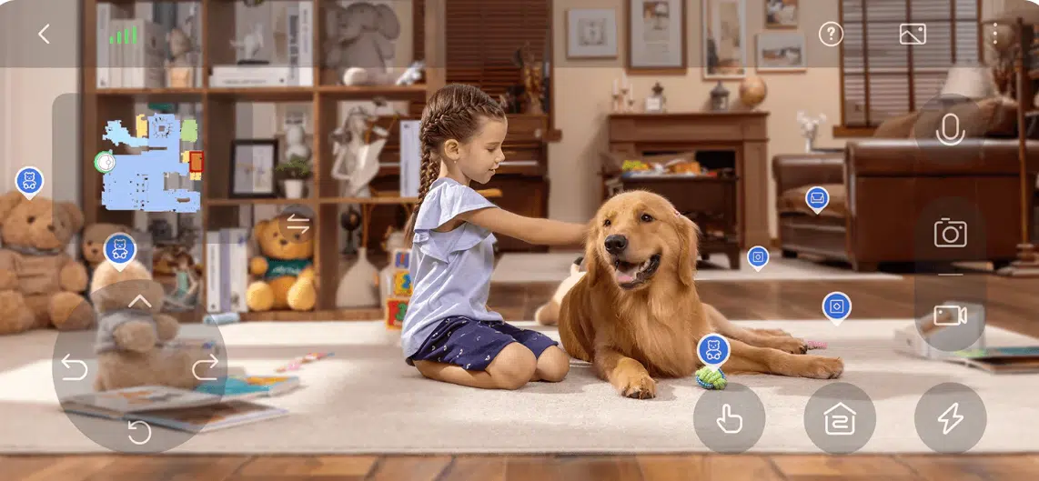 Mittlerweile schon fast Standard. Roboter mit Objektkennung besitzen eine Kamera, mit dieser kann man einen Blick in sein zu Hause werfen, wenn man mal nicht vor Ort ist. Roby selber meldet aber auch an, dass die Kameraansicht gestartet wurde und die Kamera nun eingeschaltet ist.