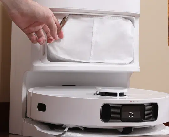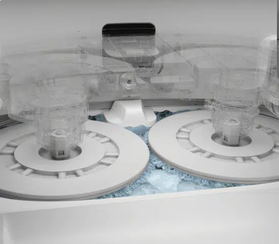 Dreame hat sich bei der Wischfunktion viel Mühe gegeben und stattet ihn wieder mit rotierenden Wischmopps aus, die Reibung und Druck auf den Boden ausüben können. Aber was ist mit Teppichen? Der Dreame L10s kann seine Wischmopps anheben, so soll es möglich sein, Teppiche mit bis zu 7mm Höhe zu saugen, ohne dass diese nass werden.