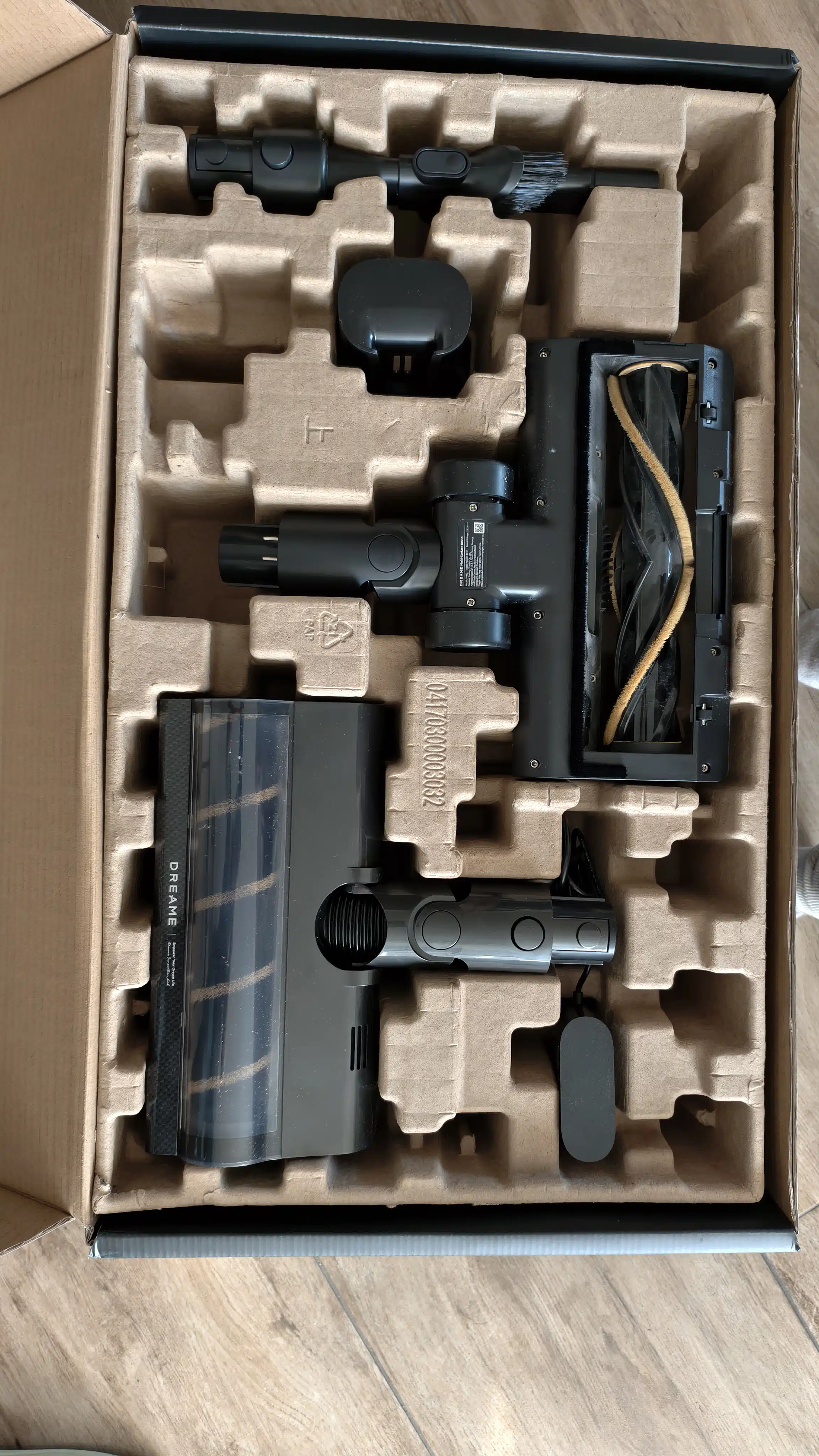 Mit einer angegebenen Saugleistung von 210 AirWatt (ca. 24.000 Pa) erreicht der Dreame V20 Pro ein sehr gutes Niveau. Auf Hartboden entfernt er Staub, Sand und Krümel nahezu vollständig, auch aus Fugen und Kanten. Die automatische Kantenabsenkung der Hauptbürste sorgt für eine effektive Reinigung bis an die Wand.