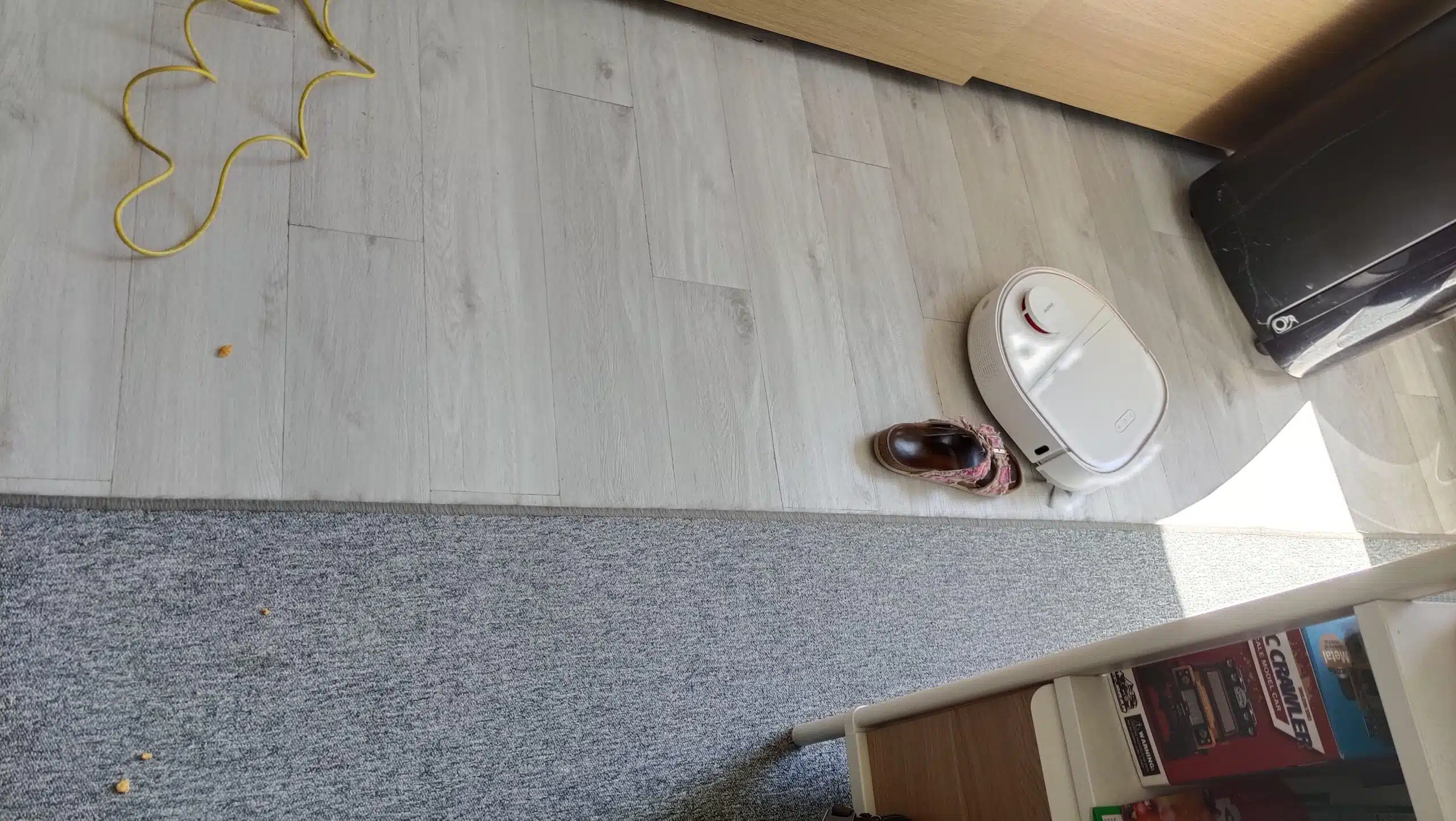 Da wir ja auch wissen wollen, was er auf dem Teppich leistet, habe ich die Mopps abgenommen und auch ein paar Sachen in den Weg gelegt um zu schauen wie gut die Objekterkennung ist.