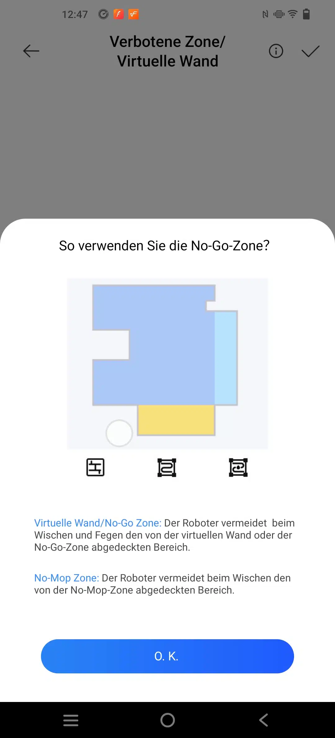 | Nach Zonen | Der Roboter kann nach bestimmten Zimmern oder Zonen zum Zwischen-Auswaschen fahren. |