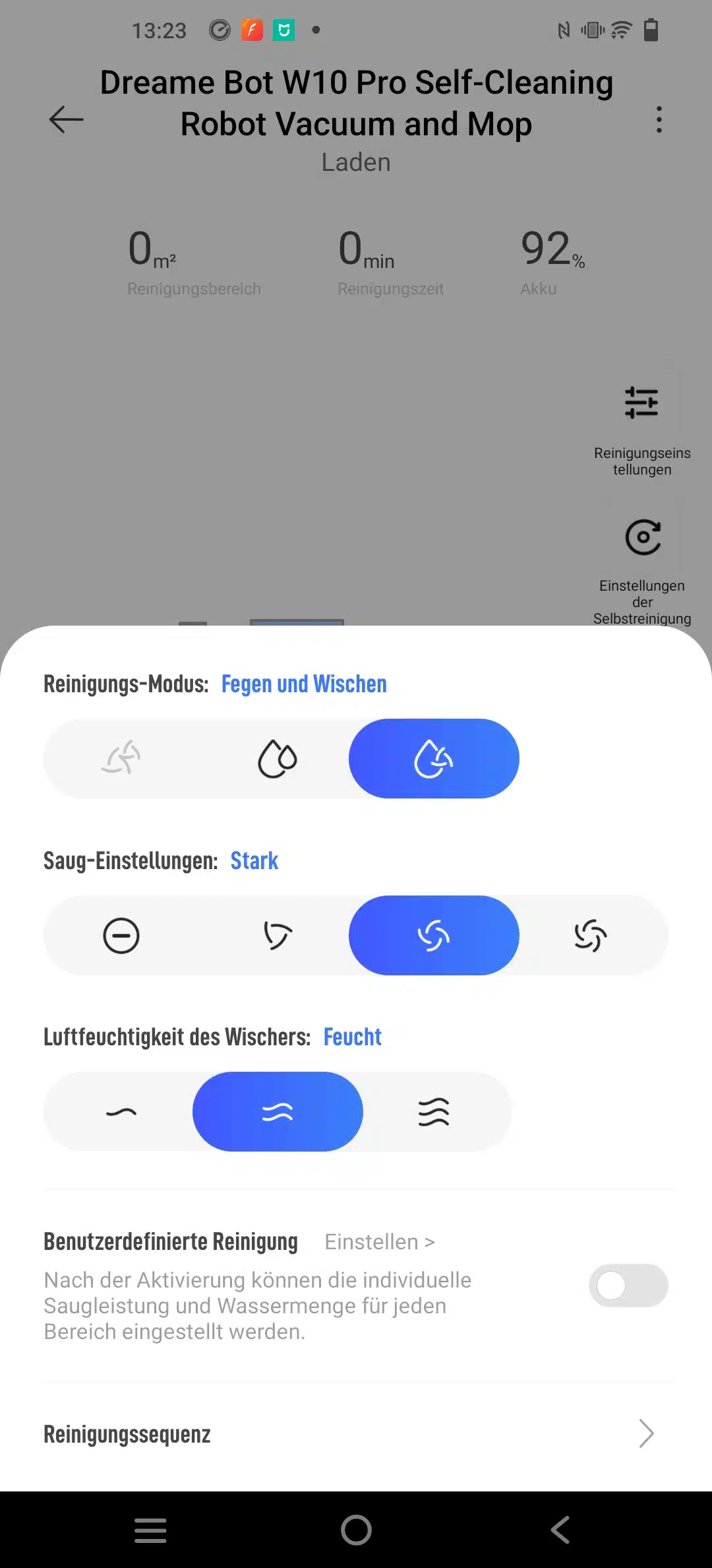 | Reinigungsmodi | Der Roboter kann entweder saugen, saugen und wischen oder nur wischen |
