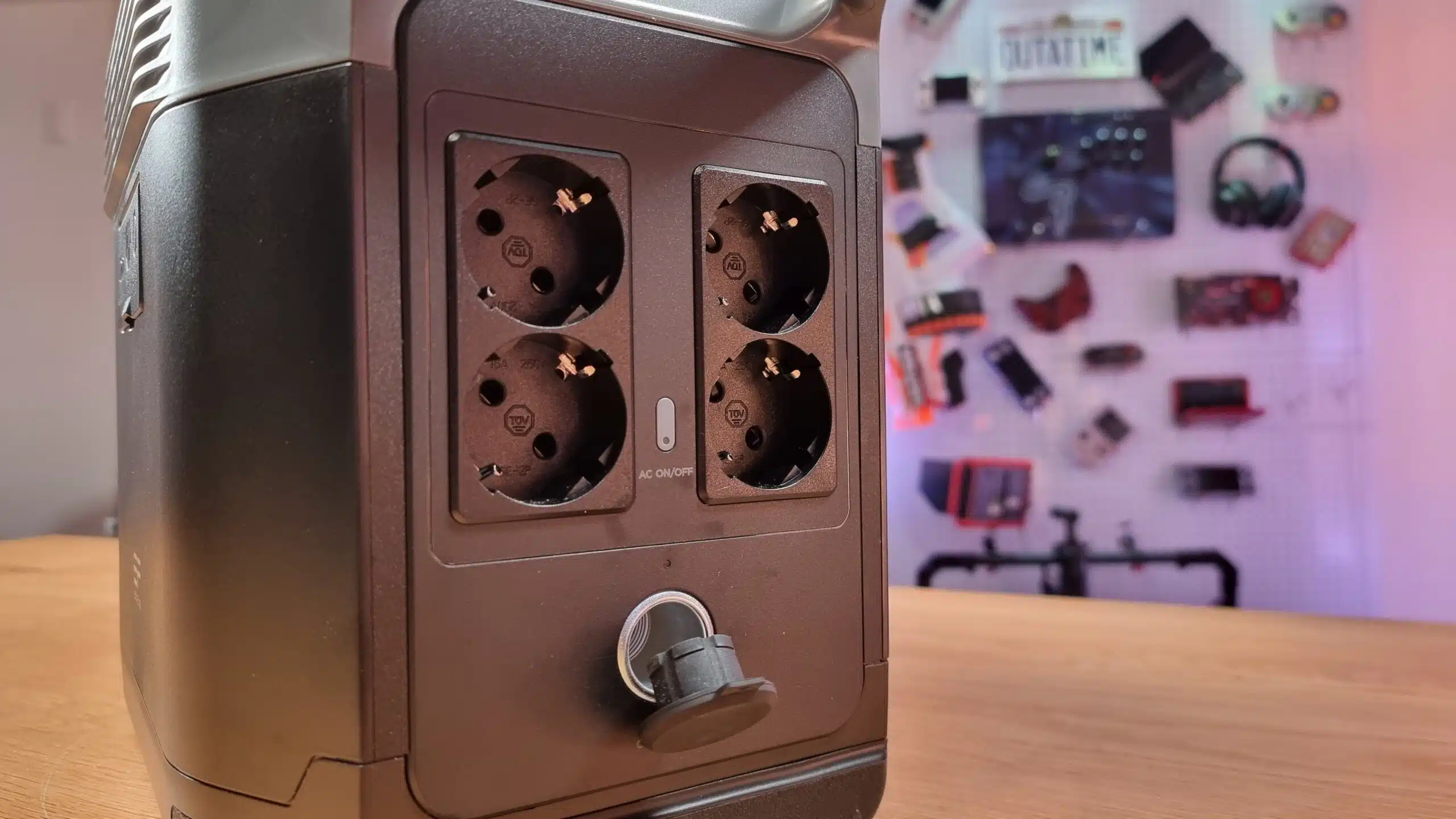 Die Powerstation von EcoFlow hat eine immense Akkukapazität von 1260 Wh und verfügt über 4 vollwertige Schuko-Steckdosen. Für den autarken Betrieb gibt es die Möglichkeit noch Solarpanele mit einer Ladeleistung von bis zu 400W an die EcoFlow Delta anzuschließen. Ungewöhnlich ist das in das Gerät integrierte Netzteil mit einer immensen Ladeleistung von bis zu 1200W. An das Gerät selbst können bis zu 11 verschiedene Geräte angeschlossen und gleichzeitig (!) aufgeladen werden.