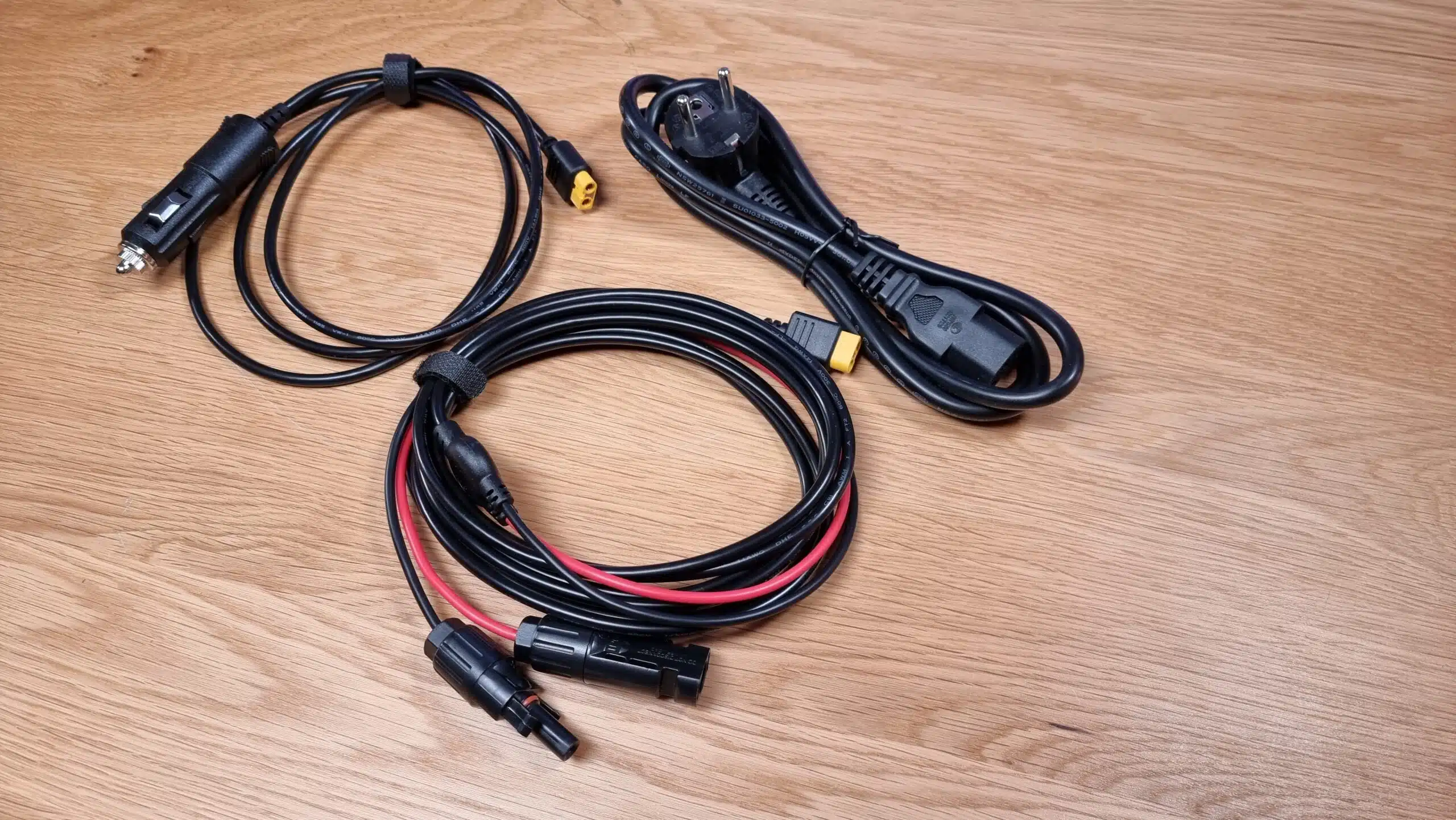 Da das Netzteil bereits in der DELTA integriert wurde, liegen lediglich ein Netzkabel, ein KFZ-Ladekabel sowie ein PV-Solarladekabel (MC4), um die DELTA per Solarstrom aufzuladen, bei. Zusätzlich gibt es noch ein umfangreiches, mehrsprachiges Handbuch.