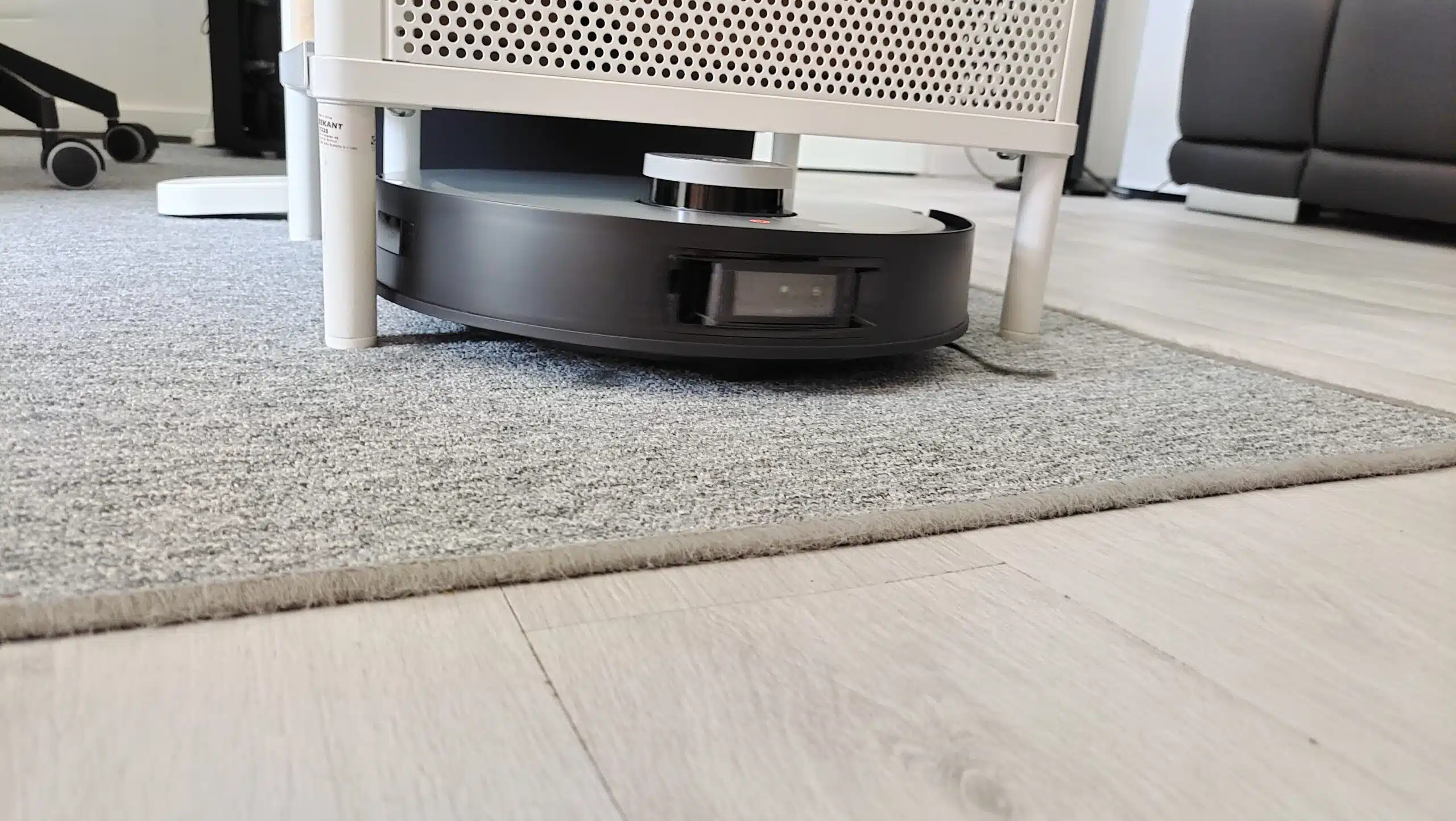 Er passt auch wieder ganz locker unter unsere Schränke und navigiert sich ohne weitere Probleme wieder heraus. Auch findet er seine Station auf Anhieb.