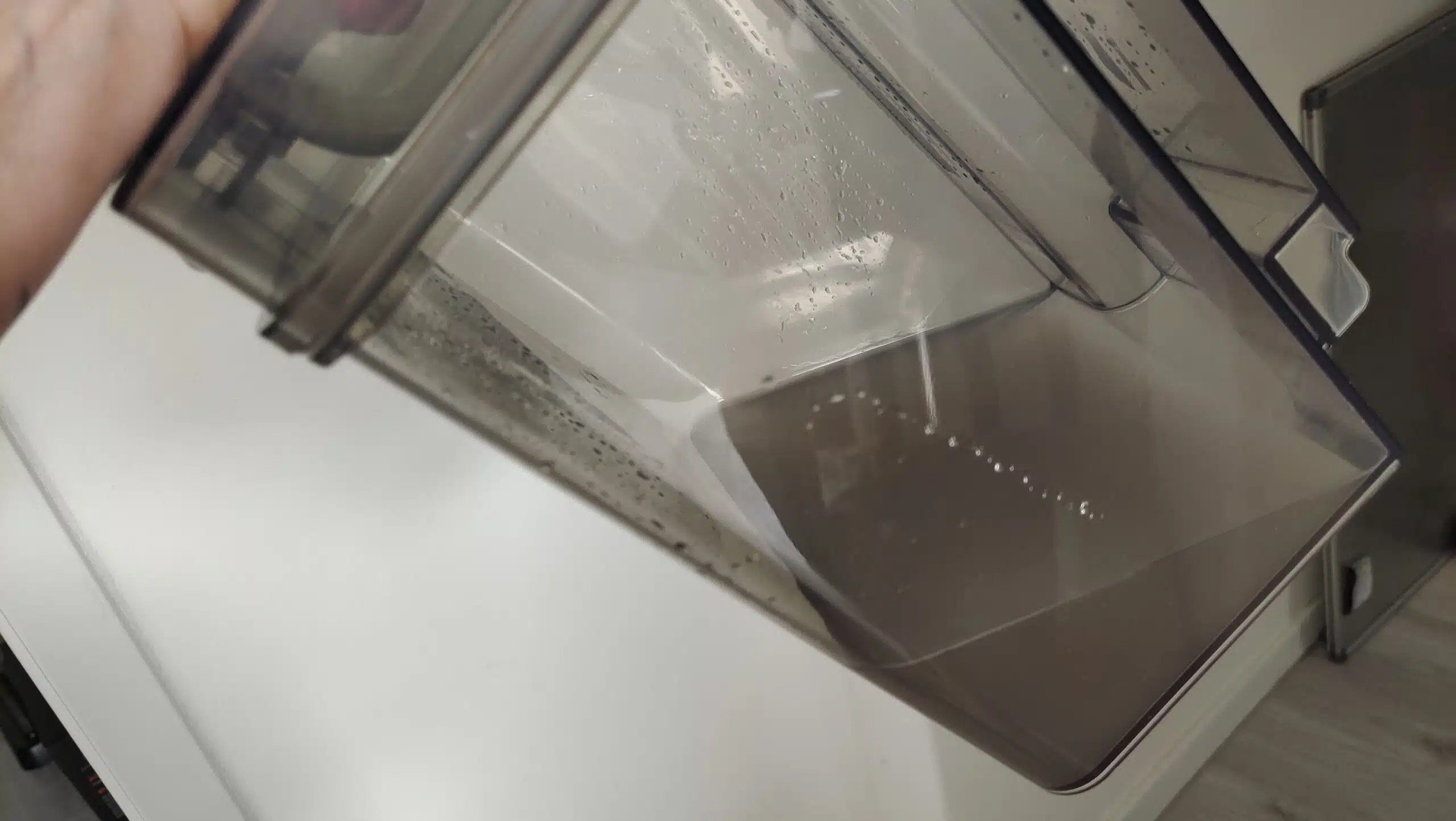 Was mich noch ein wenig stutzig macht, ist der integrierte Wassertank, man kommt einfach nicht an ihn ran. Und ich kann mir kaum vorstellen, dass dieser dort drin ordentlich trocknen kann, was dementsprechend nach einiger Zeit zu muffigem und schmierigem Wasser führen wird.