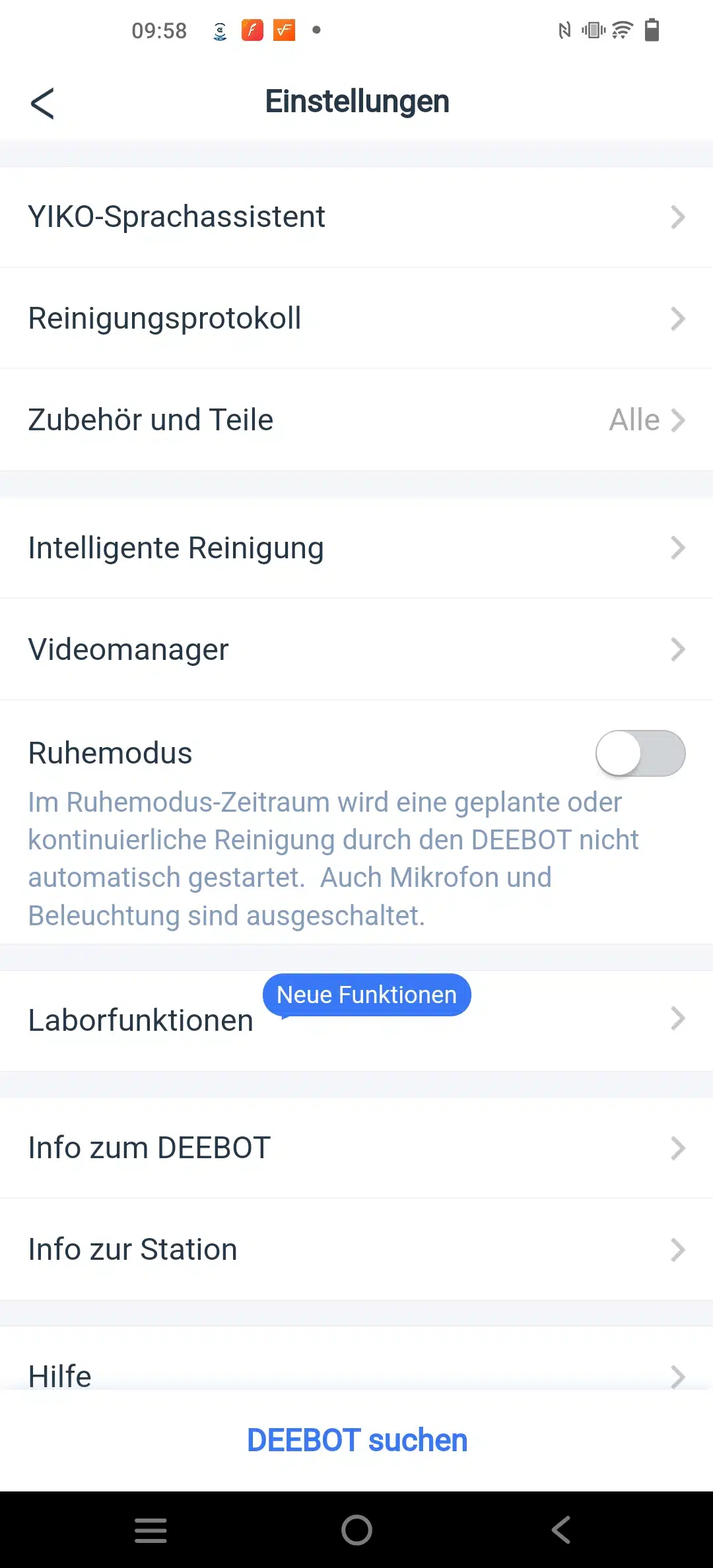 Faszinierend vorweg, war erstmal, dass man in der App die Möglichkeit hat, eine extra Laborfunktion zu aktivieren. Was dafür sorgen soll, dass grobe Schmutzpartikel nicht von den rotierenden Seitenbürsten weggeschleudert werden. Was man durchaus zu häufig sieht.