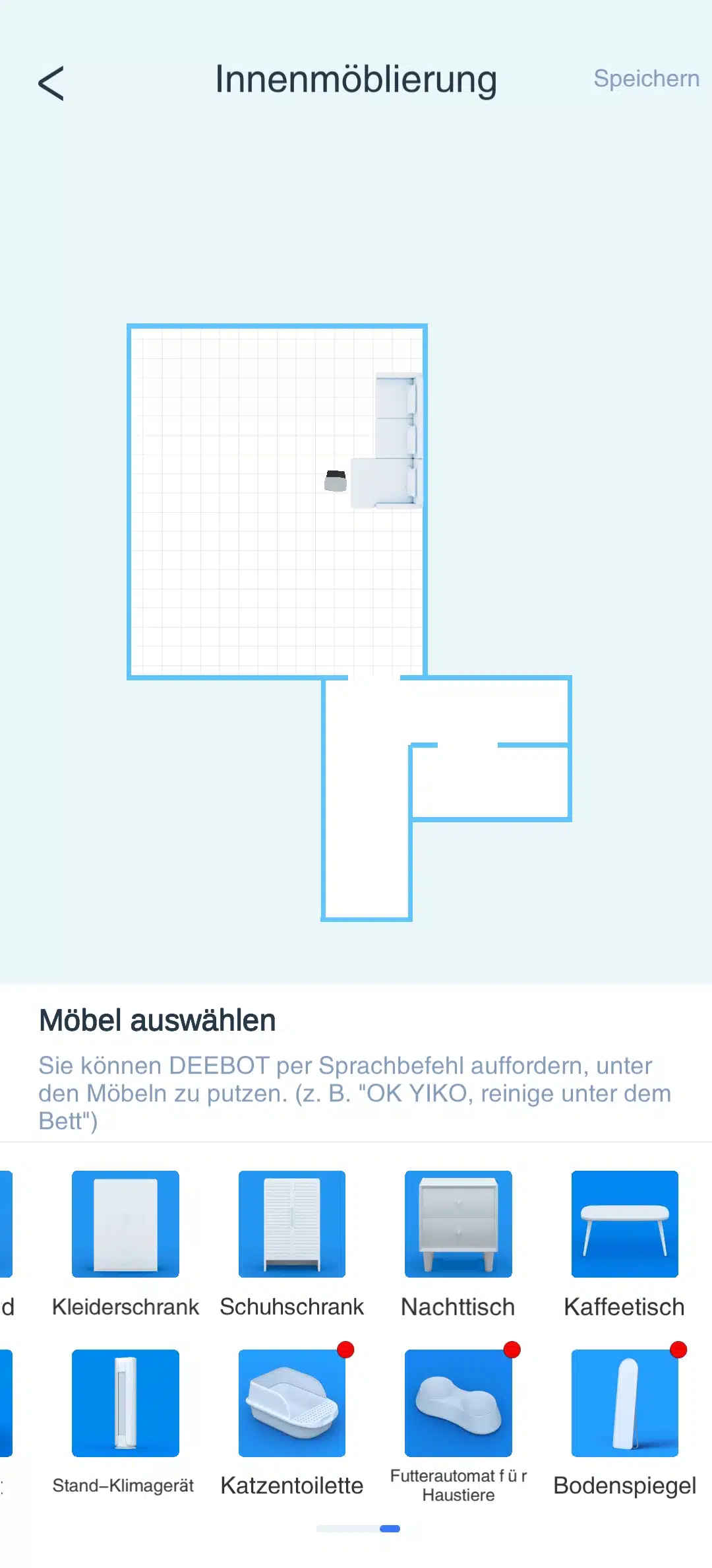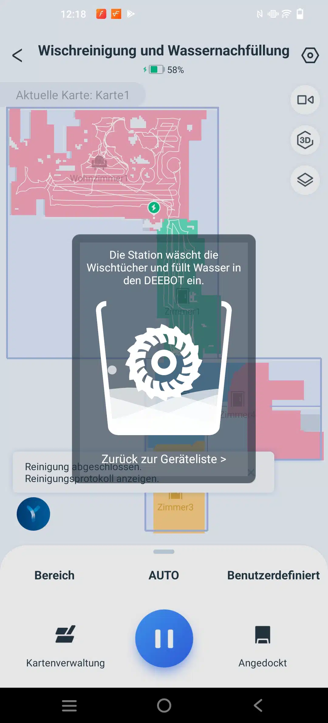 Zudem die Teppicherkennung, die hier sehr gut funktioniert und natürlich den Reinigungsplan. Der für mich am wichtigsten ist, da ich selber meinen Roby in 4 Etappen zu Hause fahren lasse, wenn ich nicht da bin.