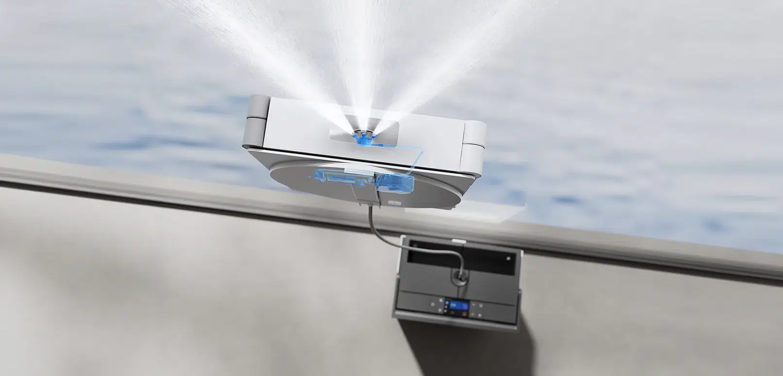Der WINBOT W3 OMNI haftet per Unterdruck an der Scheibe und bewegt sich systematisch über Glasflächen. Sensoren erkennen Kanten und Hindernisse, sodass der Roboter nicht über den Fensterrand hinausfährt. Für die Routenplanung kommt WIN-SLAM 5.0 zum Einsatz, das eine strukturierte Reinigung mit Geschwindigkeiten von bis zu 16 cm pro Sekunde ermöglicht. Laut Hersteller erreicht das System eine Hindernisvermeidung mit 1 mm Präzision, was vor allem bei Fensterrahmen und schmalen Glasflächen relevant ist.