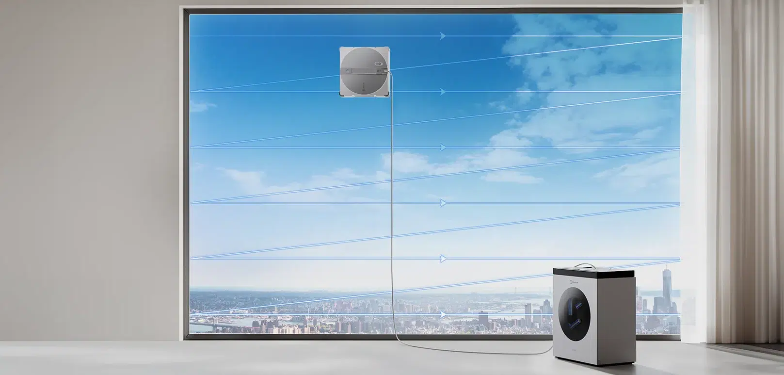 Der WINBOT W3 OMNI kann wahlweise kabelgebunden oder mit Akku betrieben werden. Im Akkubetrieb sind bis zu 70 Minuten Laufzeit möglich, was besonders bei Fenstern ohne Steckdose in der Nähe praktisch ist. Für die Sicherheit setzt ECOVACS auf ein 12-stufiges Schutzsystem, darunter 8.000 Pa Saugleistung, automatische Druckanpassung, Anti-Absturz-Mechanismen und eine kombinierte Sicherheitsleine mit Stromkabel.