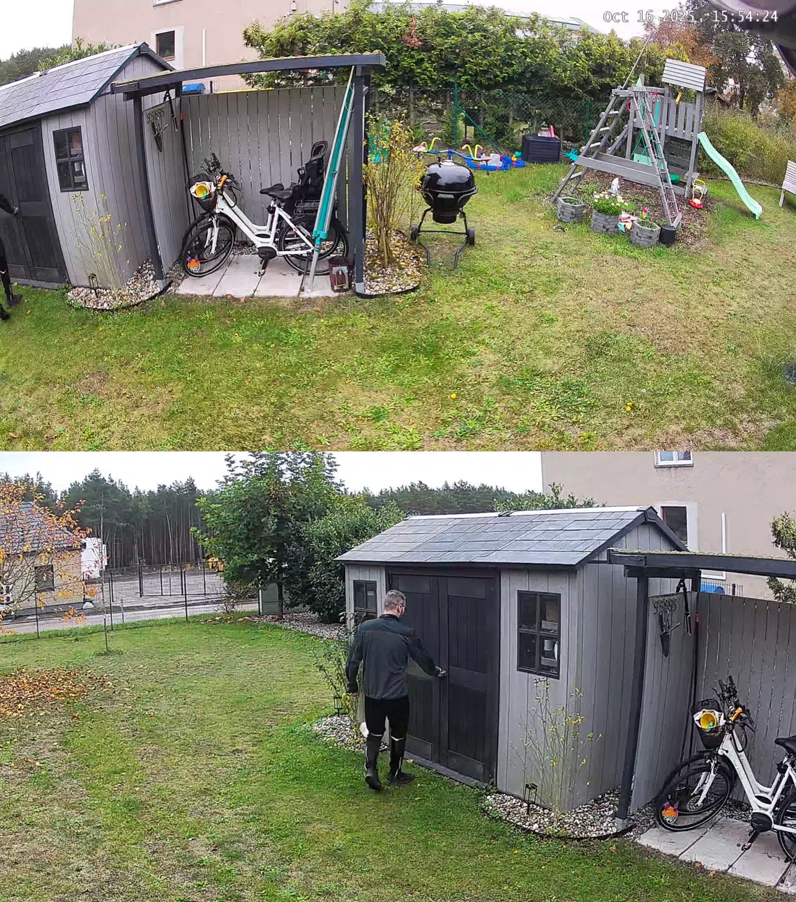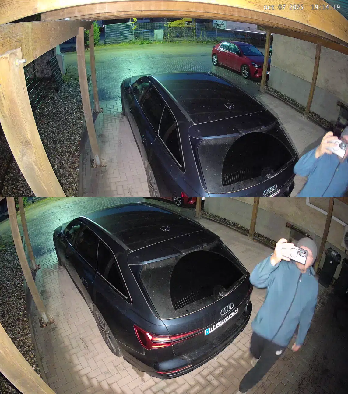 Die Nachtsicht gehört dagegen zu den besten im Feld: Farbnachtsicht per Spotlight, klassisches IR-Schwarzweiß oder eine automatische Mischung, je nach Helligkeit. Mit f/1.6-Blende bleibt die Kamera auch ohne Zusatzlicht erstaunlich empfindlich. Das Spotlight reagiert dynamisch auf Bewegungen, dimmt bei Nähe und hellt bei Distanz auf – ein cleveres Detail.