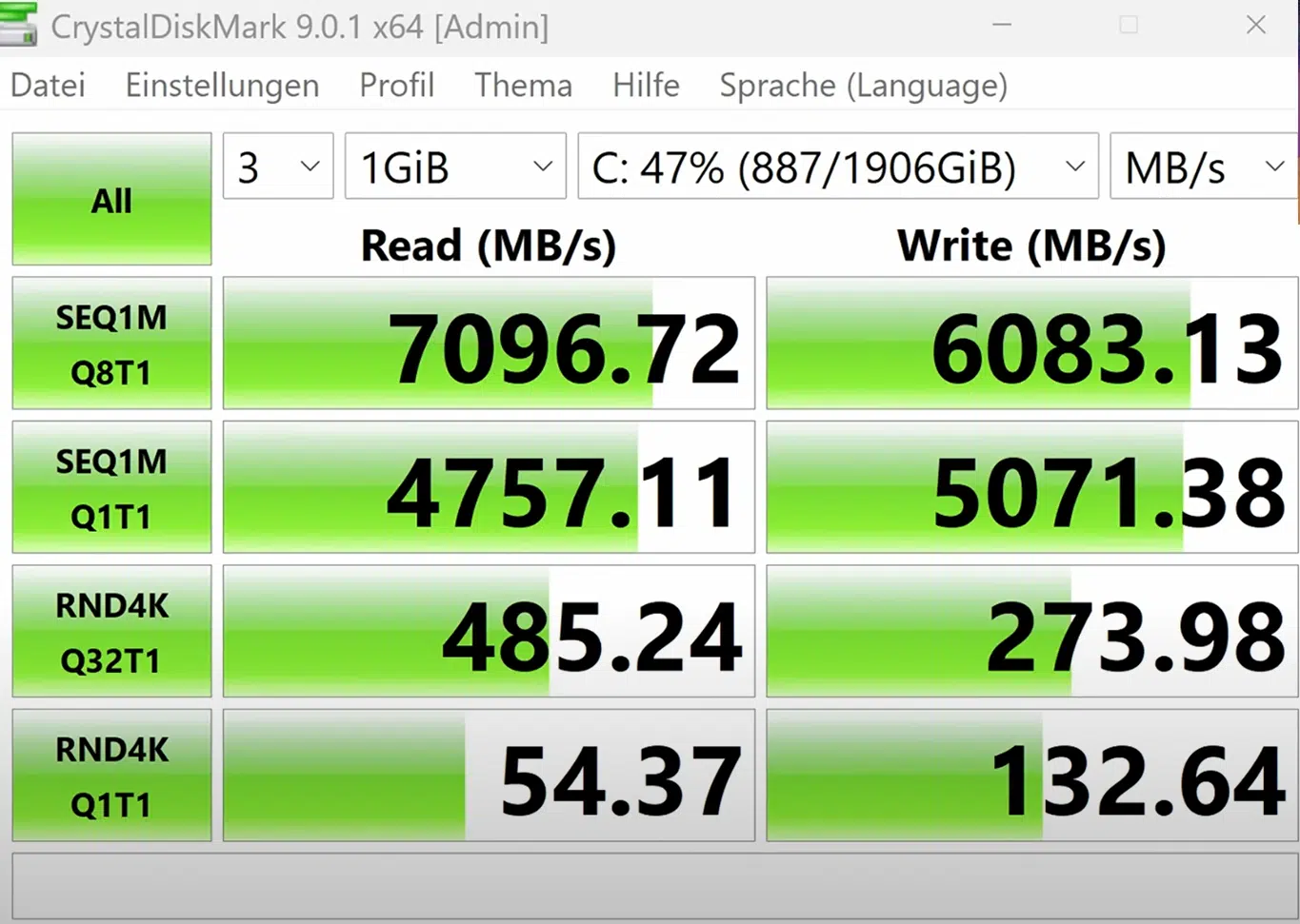 - SSD: 7 GB/s lesen, 6 GB/s schreiben