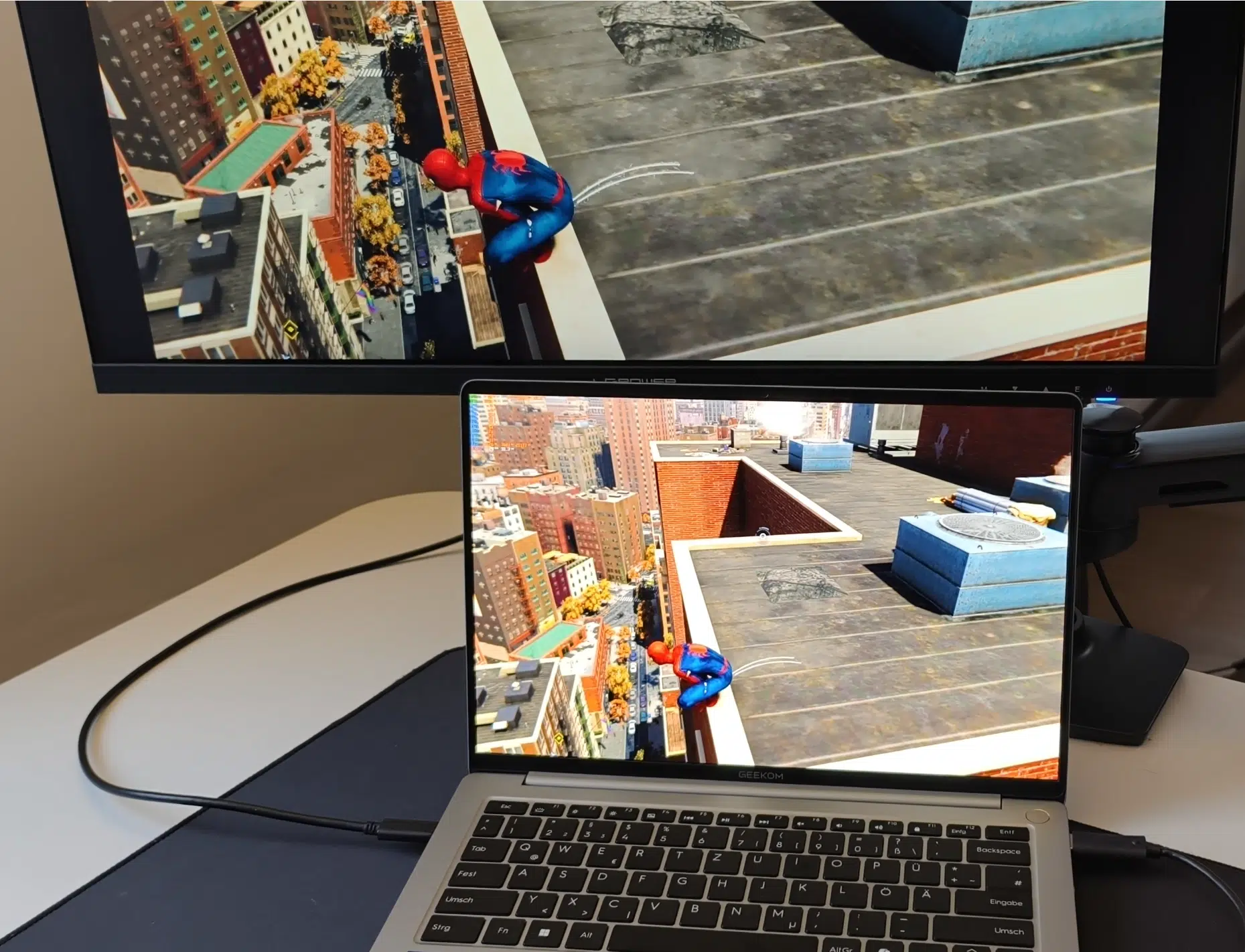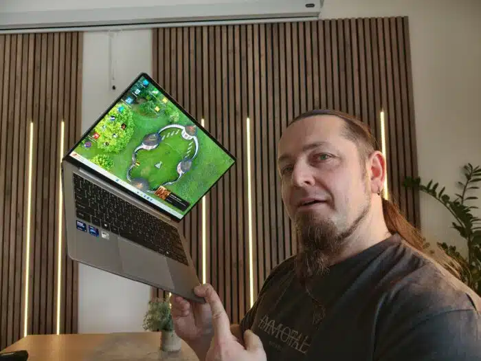 Dank der integrierten Intel Arc Grafik kann man tatsächlich eine Runde daddeln. Ja natürlich, das ist kein Gaming Notebook, und in diesem Segment bekommt man auch ganz andere Konfigurationen mit Intel-Core-i7-SOCs und RTX-GPUs. Aber man erhält ein höheres Gewicht, meist nur Standard LCD/IPS Panel und die Speicherausstattung ist meist nur halb so groß, egal ob RAM oder Speicherplatz.