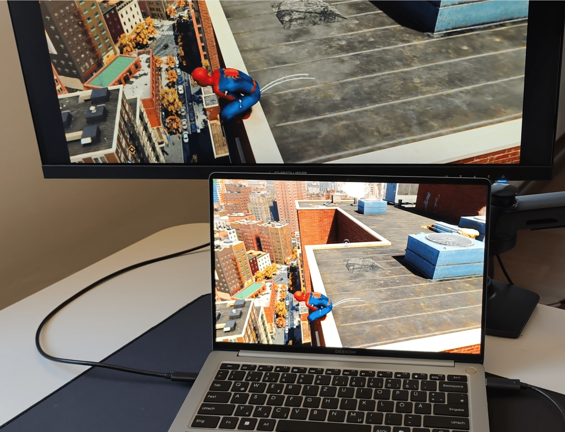 Für mich ist tatsächlich der USB-Typ-4 Port das Allheilmittel gegen zu wenig Power: Dank eGPU-Kompatibilität kann ich mittels eines externen eGPU Docks auch mal eine deutlich leistungsstärkere Grafikkarte anklemmen, gerade zu Hause ein unschätzbarer Vorteil, wenn man vielleicht noch eine ältere GPU rumliegen hat und eigentlich keine Verwendung mehr dafür hatte.