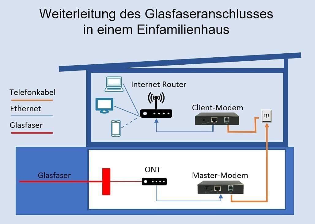 - Glasfaser-Weiterleitung vom ONT im Keller zum Router