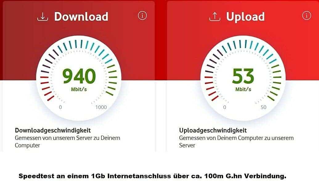 GIGA Copper gibt eine Netto-Bandbreite von bis zu 1500 Mbit/s an, bei einer physikalischen Datenrate von 1800 Mbit/s. Entscheidend ist dabei die Verkabelung: