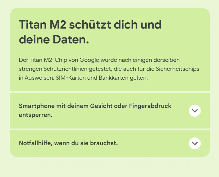 | Prozessor | Google Tensor G2, Octa-Core 2.85 GHz, Titan M2-Sicherheitschip | |