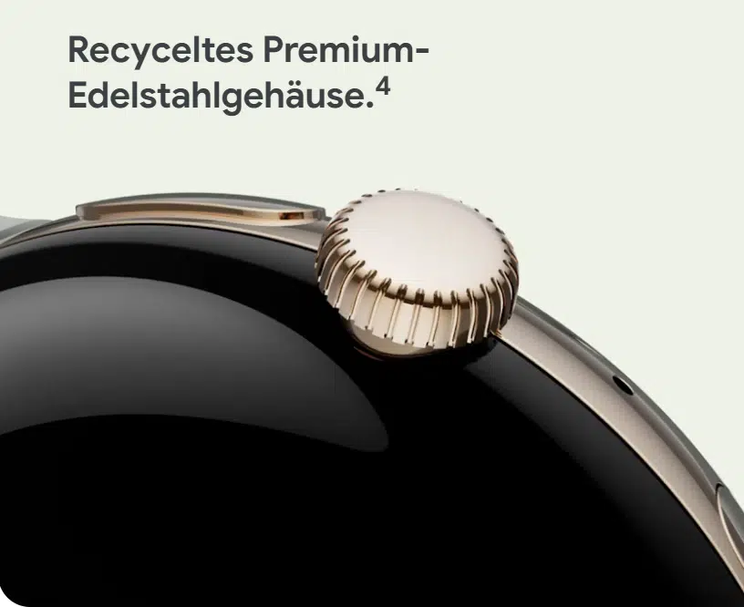 Positiv ist jedoch zu erwähnen, dass Google bei ihren neuen Produkten versucht nachhaltiger zu arbeiten. So besteht das Gehäuse der Pixel Watch aus recycelten Edelstahl und auch manche Armbänder werden aus wiederverwendeten Materialien gefertigt.