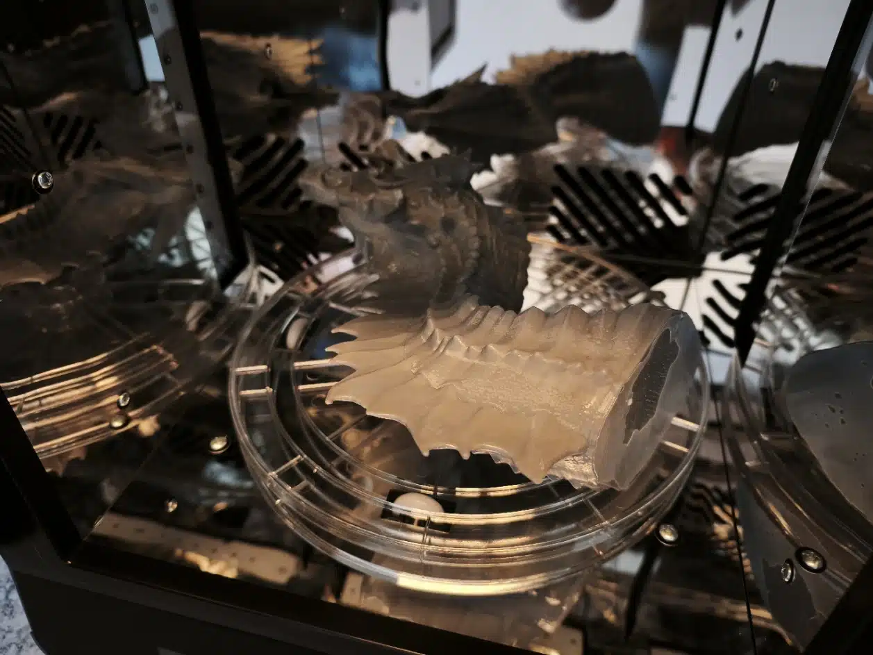 Mit dem Curer kann das Modell mittels UV Licht zur finalen Aushärtung gebracht werden. Zeitgleich lässt sich hier aber auch eine Temperatur bis 60°C auswählen. Auch das ist mir bisher unbekannt gewesen, soll aber eben zu einer besseren Aushärtung des Modells führen. Hier sollte man die Angaben des Kunstharz/Resin Herstellers beachten.