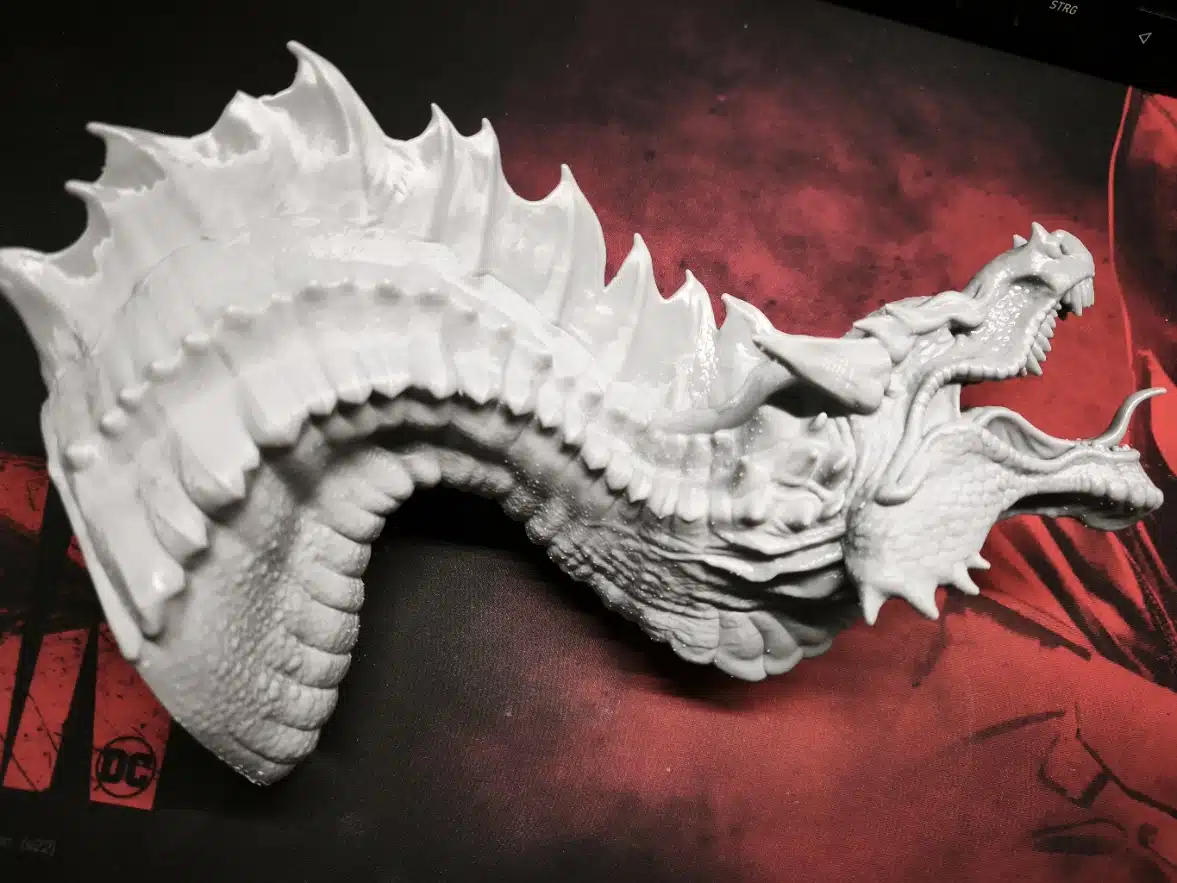 Weil durch das Anheben von der Folie es zu kleinere Druckfehlern kommen kann. An ein paar Stellen sieht man Ungereimtheiten am Anfang des Drachens und ebenso unter dem Kopf. Hier gabs beim Anheben mit der Folie scheinbar minimale Positionsänderungen, die diese Streifen verursachen. Am Druckarm oder dem Druckkopf wird es sicherlich nicht liegen, sonst würden diese kleinen Ungereimtheiten vermehrt auftauchen.