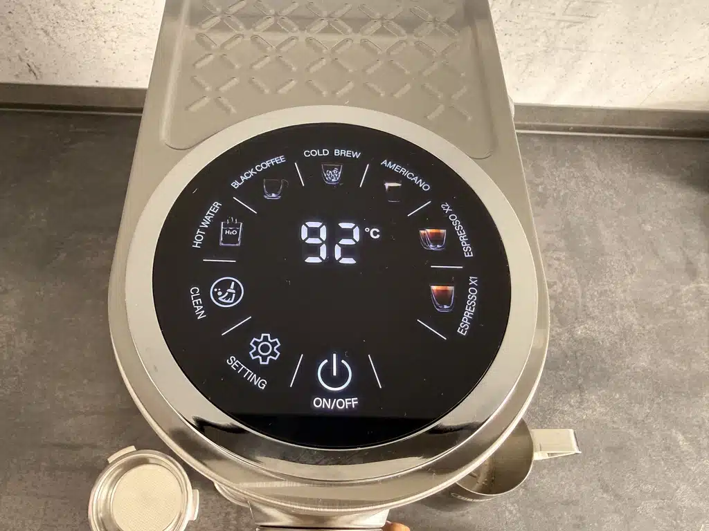 Das Herzstück der H13 ist ihr intuitiver Touchscreen, über den sich sämtliche Funktionen klar und direkt ansteuern lassen. Kein fummeliges Drehen und kein Rätselraten – ein Fingertipp reicht, um Temperatur, Brühzeit oder Dampfstufe zu wählen. Für Kaffeefans, die gern an Parametern feilen, ist das Gold wert. Die Bedienlogik ist angenehm übersichtlich: Erster Druck stellt die Temperatur ein, der zweite die Brühzeit – und wer es eilig hat, kann sich einfach auf die sechs voreingestellten Kaffeerezepte verlassen.