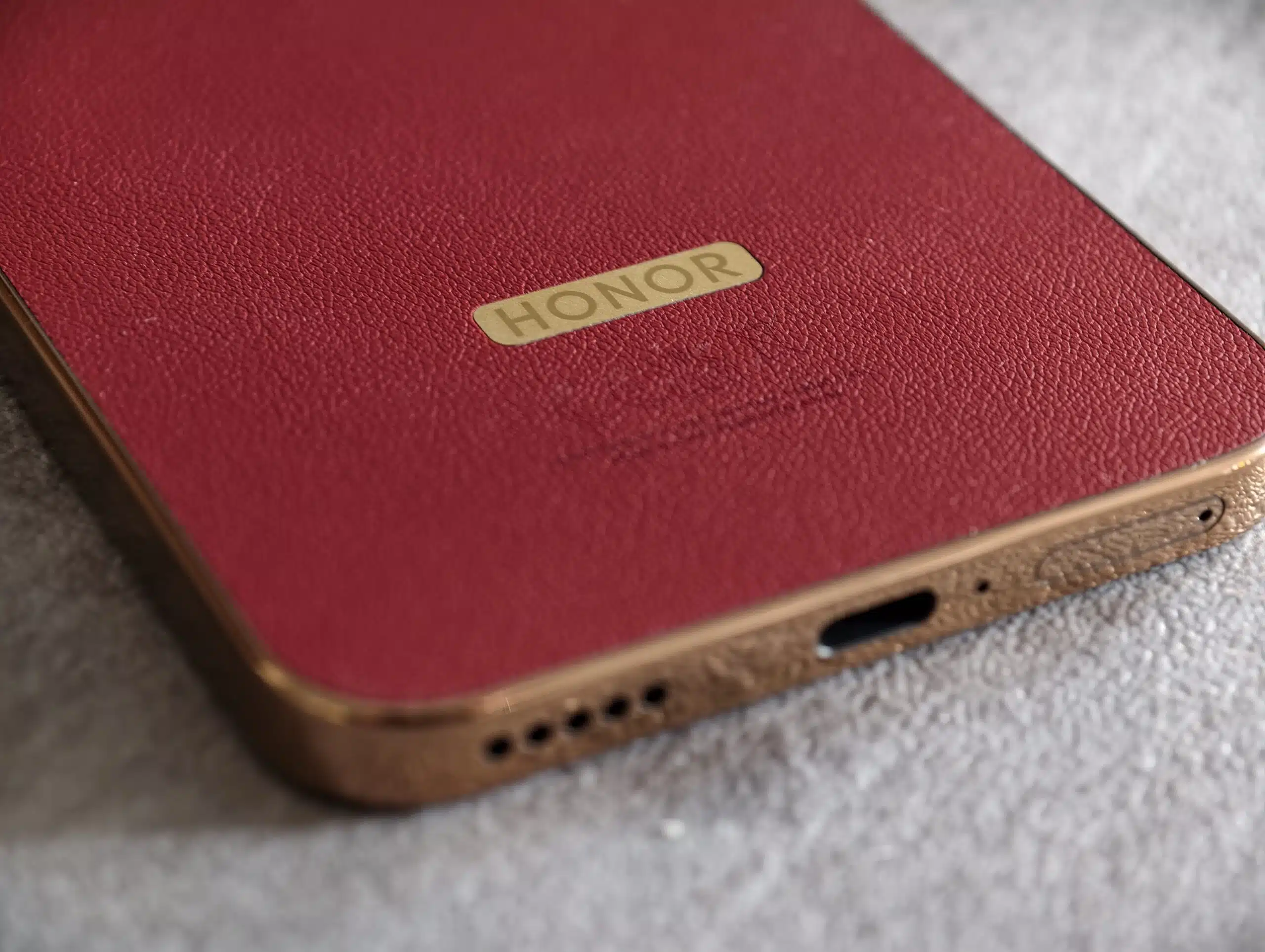 Wenn man das Magic 8 Lite in der Hand hält, möchte man kaum glauben, dass hier ein 7.330 mAh starker Akku verbaut ist. Das Gehäuse ist lediglich 7,76 mm dick und das Gewicht liegt bei gerade einmal 189 bis 193 Gramm (je nach Farbausführung). In der Hand fühlt es sich dadurch recht wertig und keineswegs klobig an. Aber Einschränkungen gehen bei der Materialwahl einher: Unsere rötliche Kunstlederversion mit dem goldenen Rand schreit direkt nach Kunststoffrahmen.