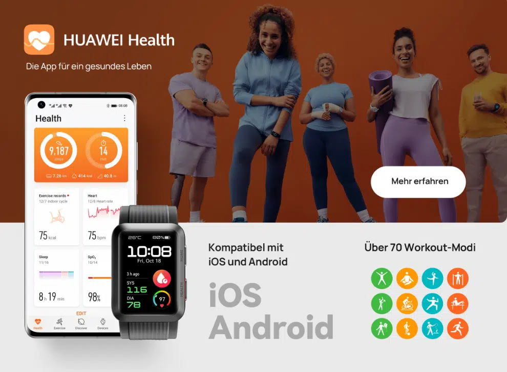 | App-Kompatibilität | Android 6.0, iOS 12, Harmony OS 2.0 |