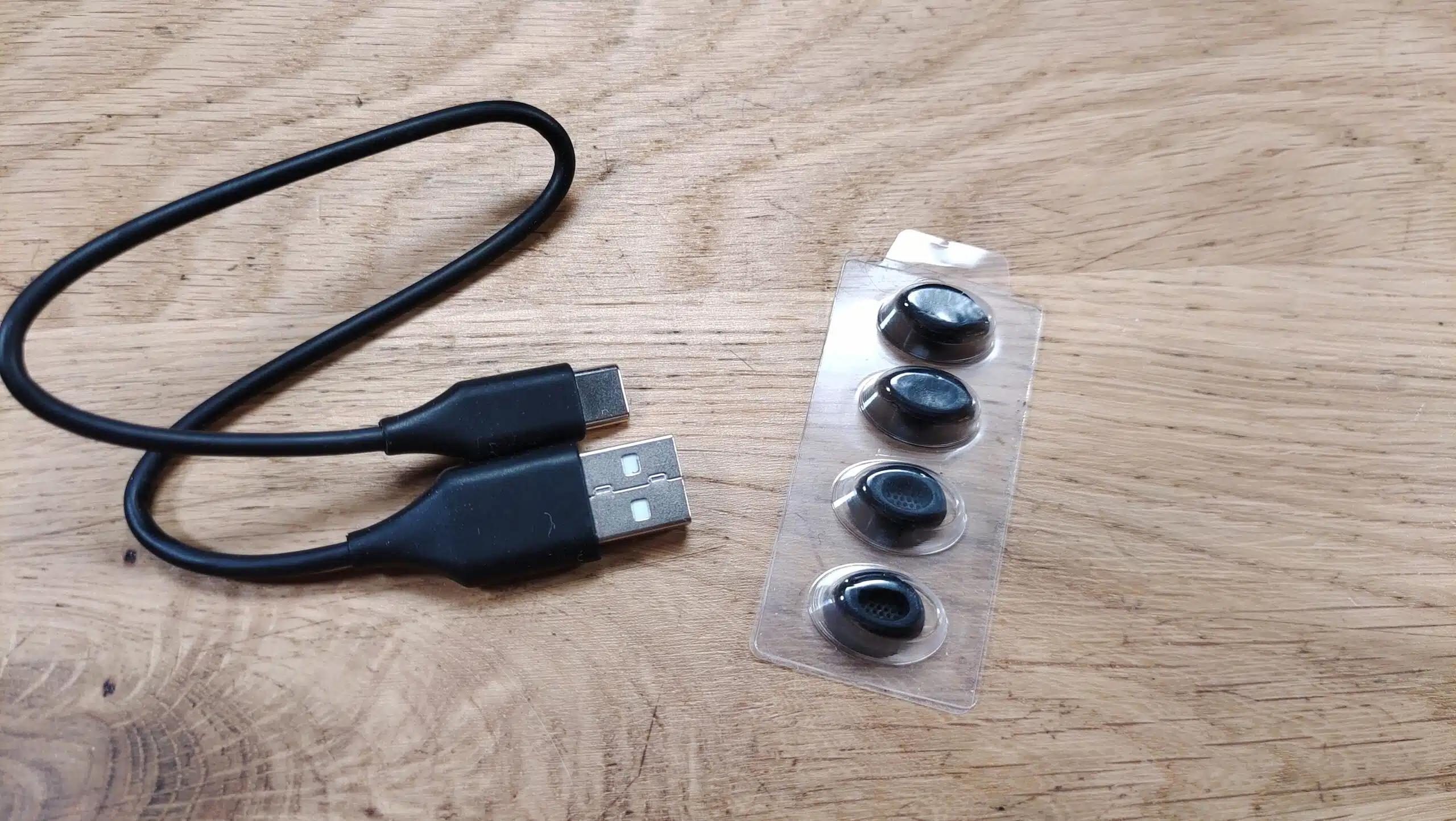 Sie erscheinen in einem dezenten Design, fast ganz in Schwarz und nur am Kopfhörer selbst findet sich noch ein wenig Grau vor. Sie kommen leicht voluminös rüber und pro Hörer kommen wir auf ein Gewicht von 7g.