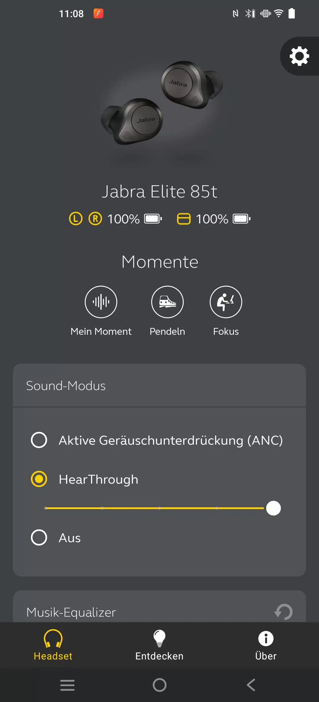ANC ist dafür da, die Umgebungsgeräusche zu unterdrücken, sodass die Musikwiedergabe auch bei lauter Umgebung möglich ist, ohne die Lautstärke aufdrehen zu müssen. Bei den Jabra Elite 85t kann man per App diese in fünf Stufen regulieren. So kann man sich das anpassen, wie man es sich selbst gerne wünscht.