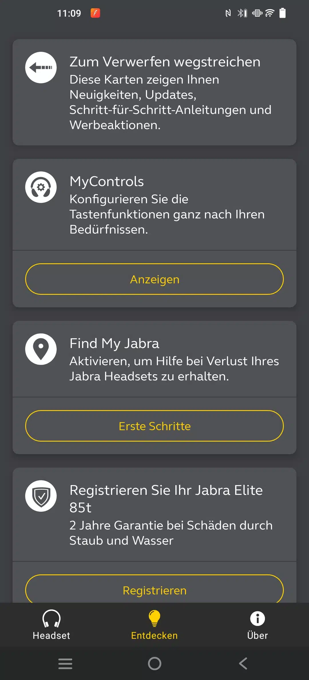 Für Android und iOS gibt es zusätzlich die Jabra Sound+ App, die noch mehr Einstellungsmöglichkeiten bieten. So kann man den Klang über den integrierten Equalizer anpassen, aus vorhandenen Einstellungen wählen oder auch eigene Setups abspeichern. Auch lassen sich die Remote-Funktionen nach Belieben auf beide Hörer verteilen und anpassen. Und solltest du die Kopfhörer mal verlegen, gibt es auch eine Suchfunktion, mit der du sie wiederfindest.
