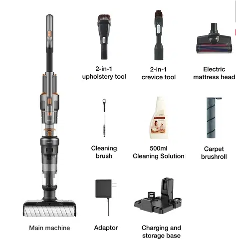 | Features | abnehmbarer Sauger, Teppichbürste, Wassersprüher, Rollen Lufttrocknung, OLCD Display |