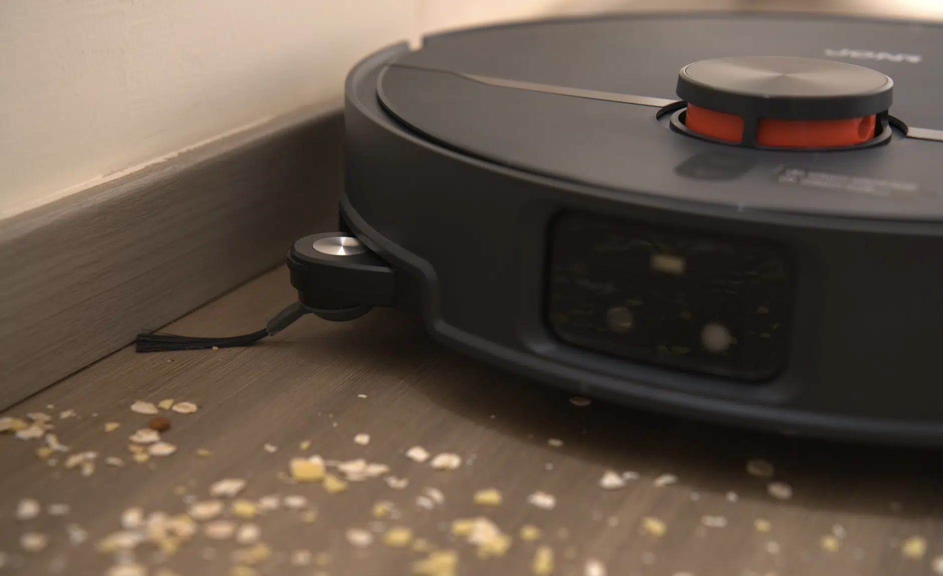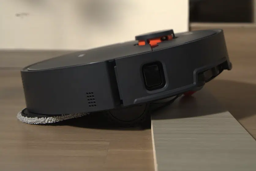 Trotz Lidar-Turm passt das Gehäuse unter Möbel mit rund 13 cm Höhe. Der Mopp wird beim Saugen automatisch abgelegt, was empfindlichen Böden zugutekommt. Und die ausfahrbare Seitenbürste sorgt dafür, dass er sich zumindest bemüht, möglichst weit in Ecken zu kommen.