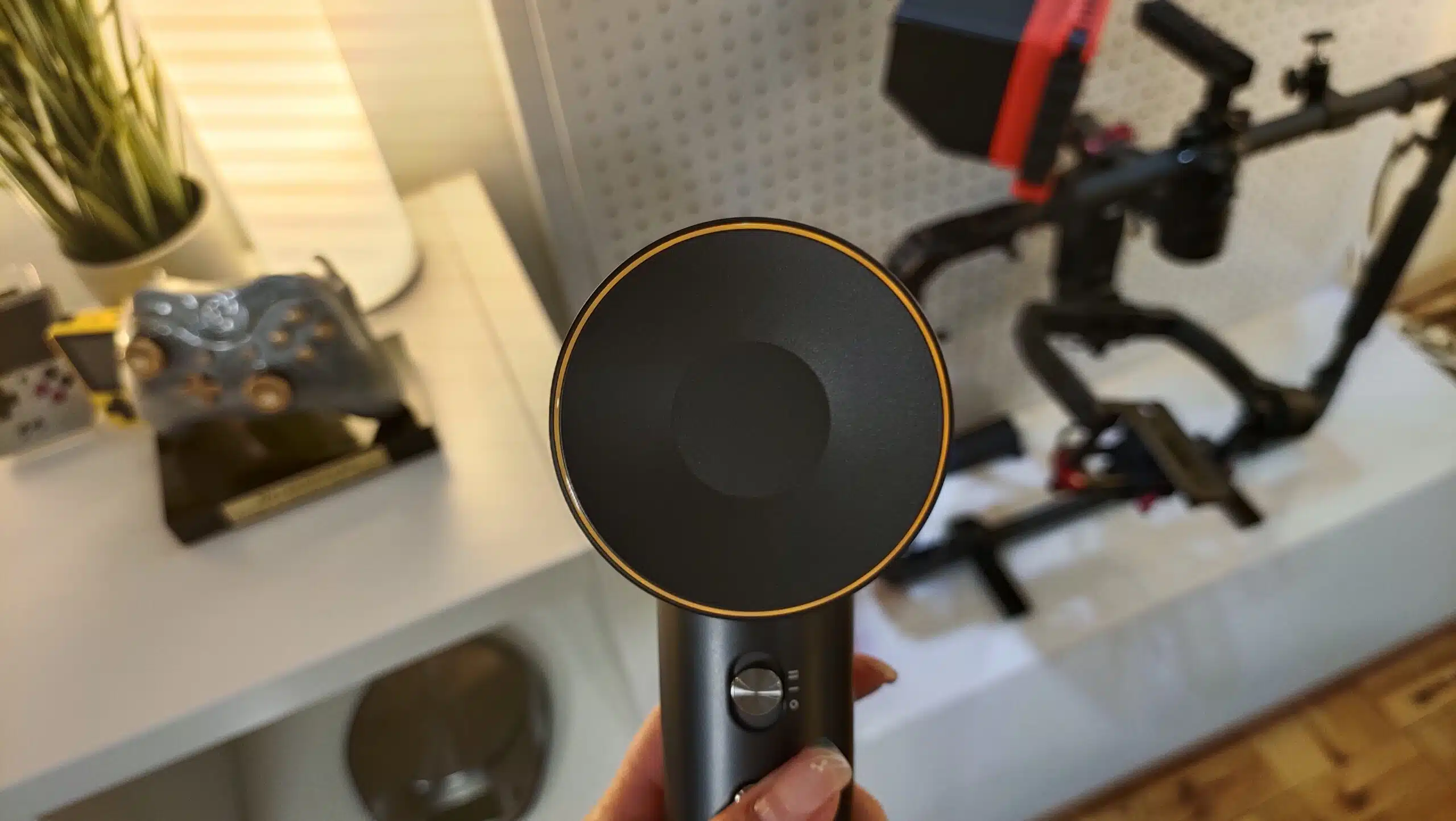 Die Düse sitzt durch den magnetischen Ring fest am Haartrockner, fällt also nicht einfach runter. Günstigere Modelle haben hier mit Aufsteck-Düsen gerne mal Probleme mit dem Halt. So war es bei meinem Vorgänger, den ich zu Hause hatte.