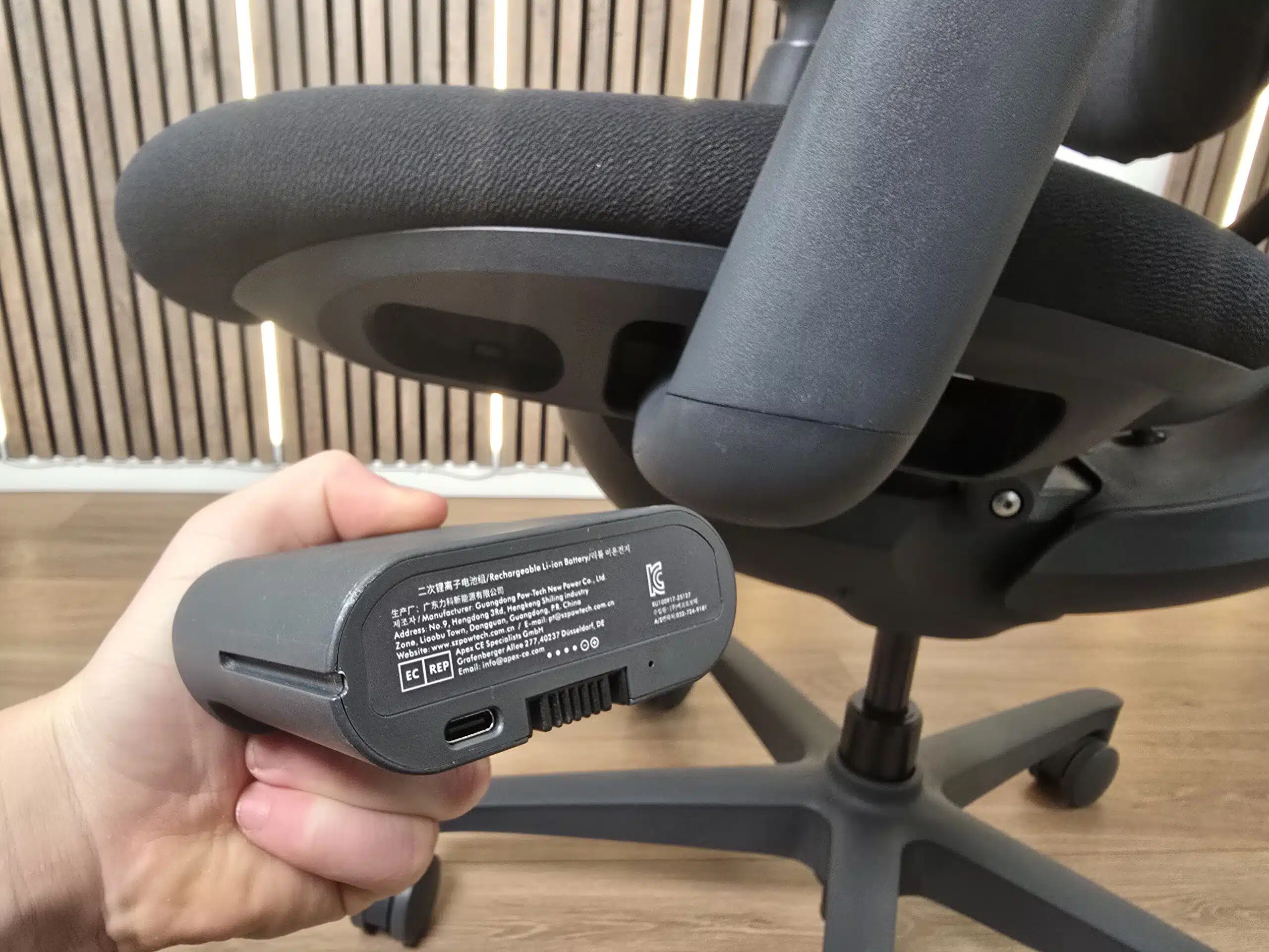 Ein größerer Unsicherheitsfaktor bleibt die Elektronik. Der integrierte 2200 mAh Akku und die Motorik funktionieren im Test zuverlässig. Der Akku lässt sich zudem per Plug and Play einfach herausziehen und einsetzten und macht den Stuhl damit extrem flexibel und man muss nicht auf nervige Kabelei achten. Wie langlebig das System aber ist, lässt sich aktuell schwer beurteilen.