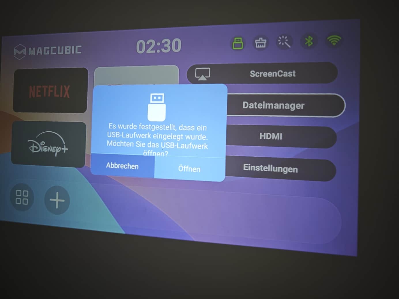 Tatsächlich war ich schon echt überrascht, was man hier für das wenige Geld an Bild und Helligkeit bekommt. Nimmt man den runden Magcubic den wir vor einer Weile getestet haben, zum Vergleich, ist der Unterschied schon extrem, was die Helligkeit, Bildschärfe und das gegebene Bild angeht. Klar, das Menü bleibt einfach, der Store langweilig leer, der Sound aus den Speakern nur mittelmäßig, aber hey, die Kiste kostet im Ideal fall auch keine 70€ mehr. Und obendrauf gibts eben auch eine automatische Bildanpassung, die sogar ziemlich gut funktioniert.
