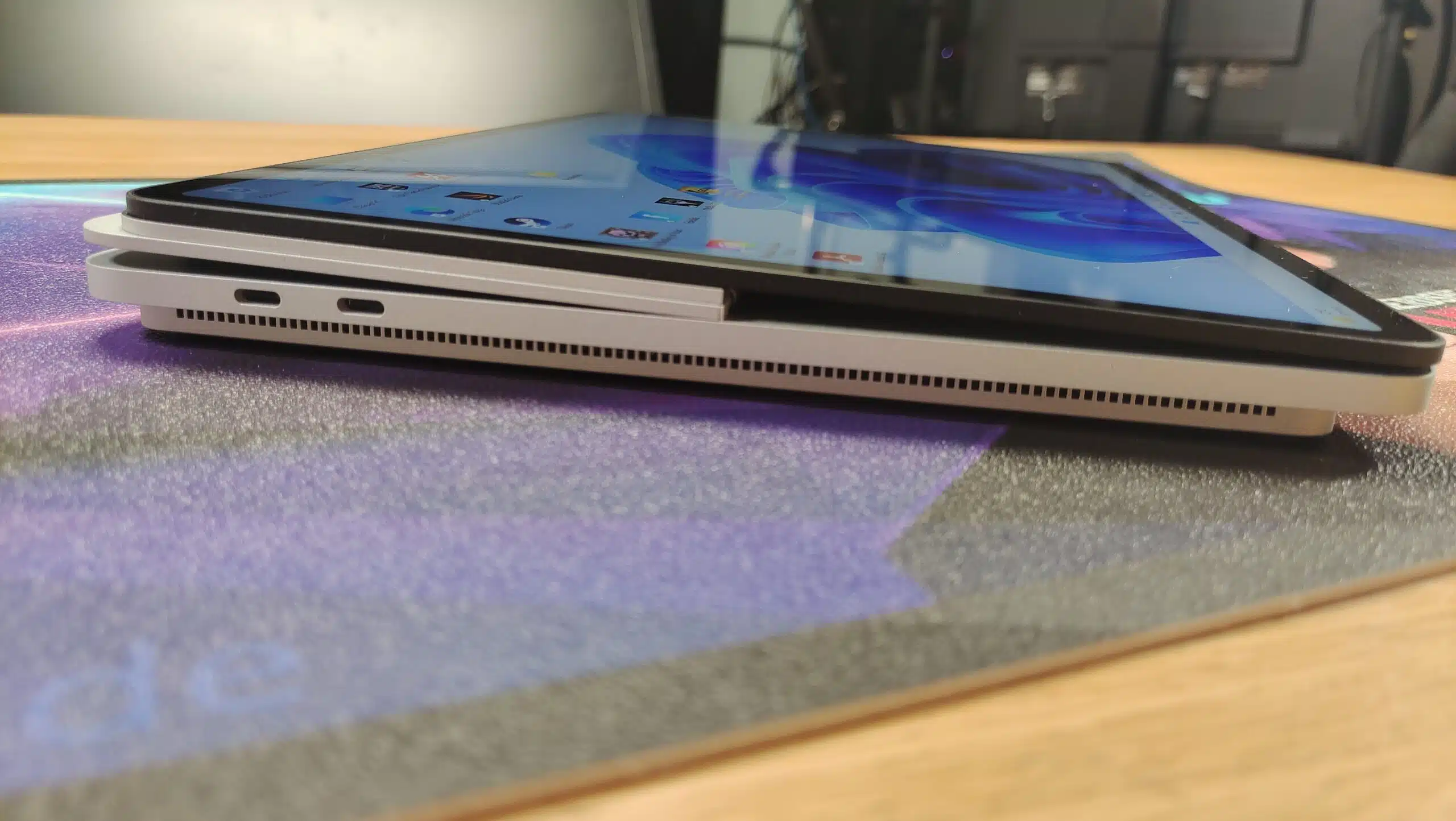 Und hier, Achtung Wortspiel, „entfaltet“ das Notebook sein ganzes Potenzial. Die Nutzung beschränkt sich nicht nur auf die klassische Notebook Bedienung, sondern kann, je nach Anwendungsfall, verändert werden. Gerade in Kombination mit dem Digitizer, dem Microsoft Surface Slim Pen 2 auf dem flach umgeklappten Display, lässt es sich hier herrlich kreativ Arbeiten oder Zeichnen.